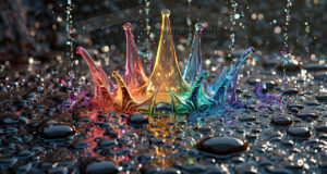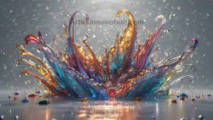AI-generated dynamic liquid fluid art — explosive rainbow-colored liquid splash in UHD photorealistic 3D renders.