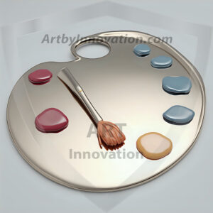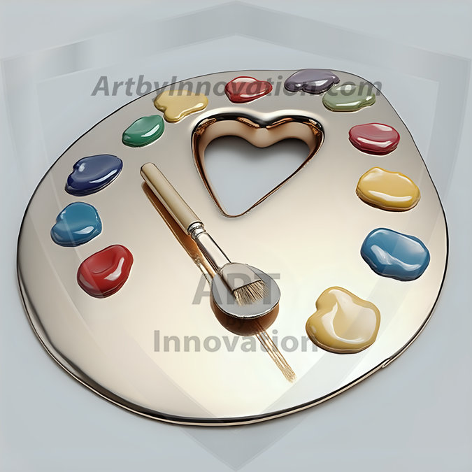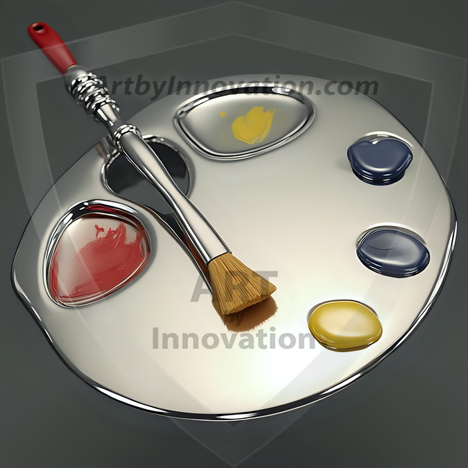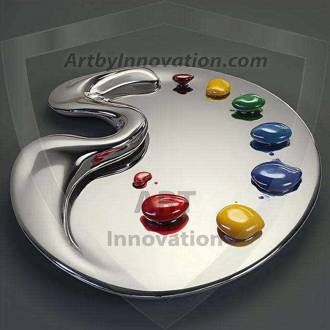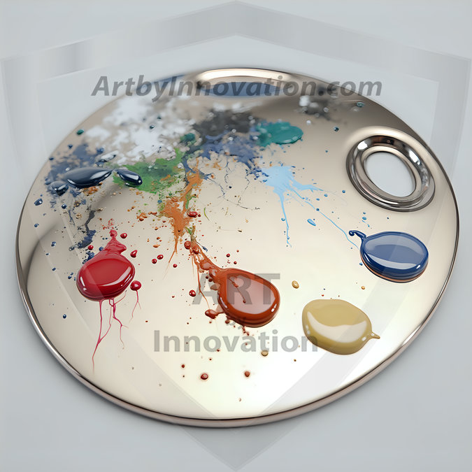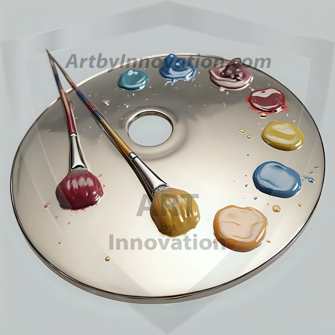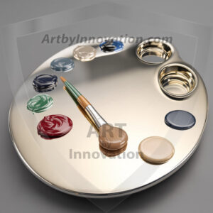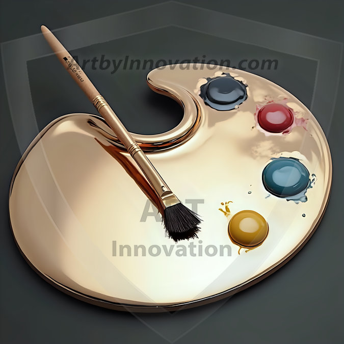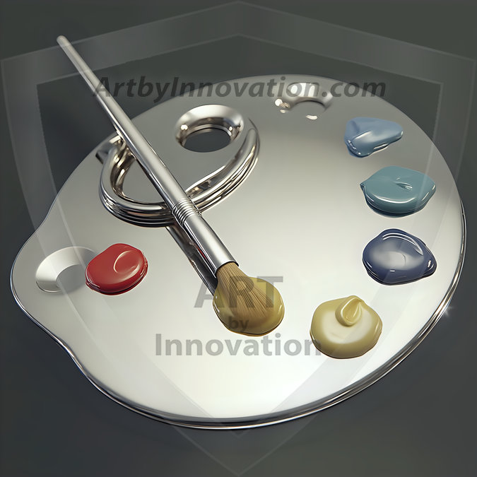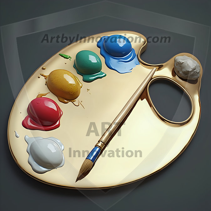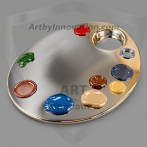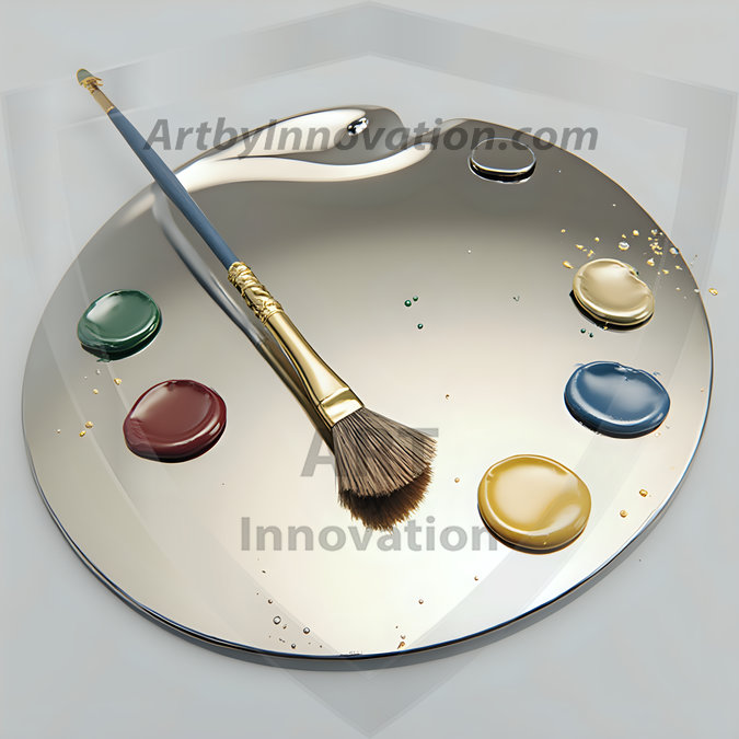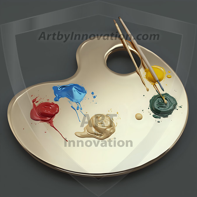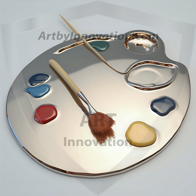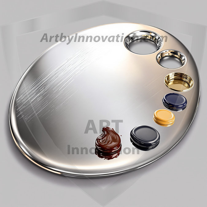 AI-generated premium painter's palette digital designs — metallic, polished, and fantastical palette art in UHD.