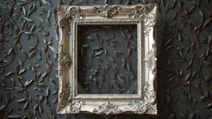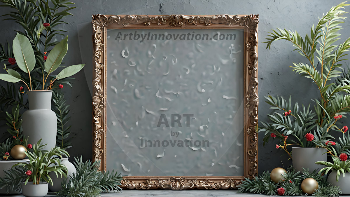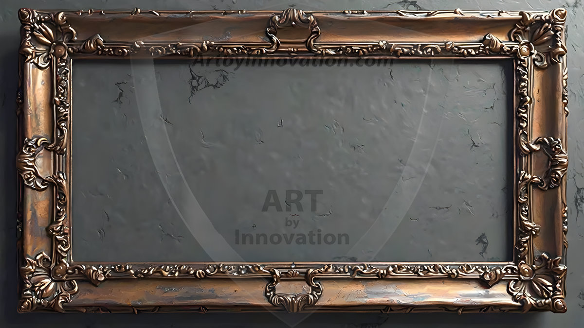 AI-generated decorative picture frames — copper, gold, silver, artistic, and glass overlay designs in UHD for digital use.