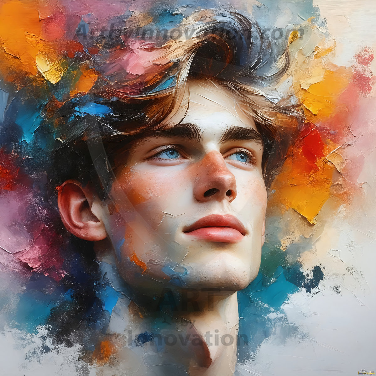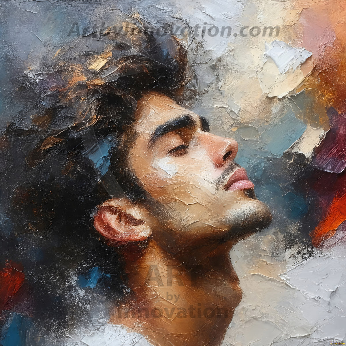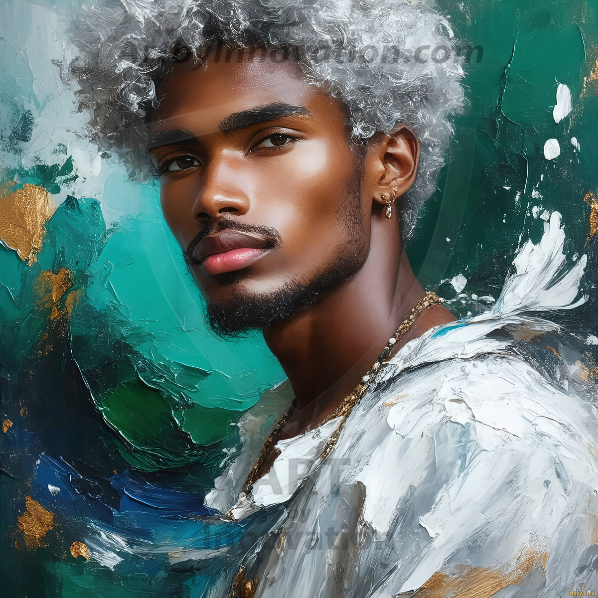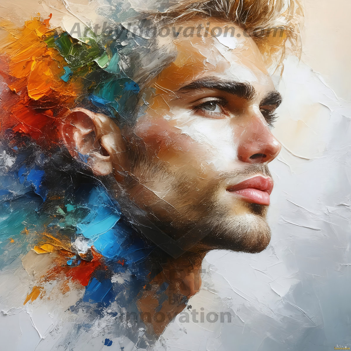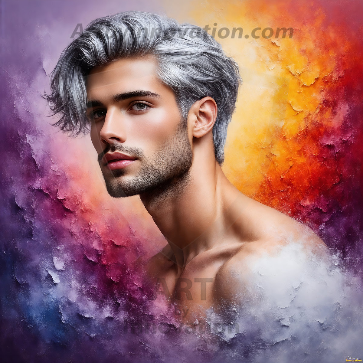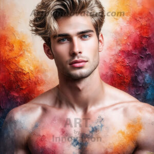Art imitating life — and life imitating art. This AI-generated abstract concept collection features handsome men breaking the fourth wall of the canvas itself, emerging from classic oil paintings as their faces and forms come alive while their bodies remain painted on the wall. A profound meditation on the connection between creative expression and human experience — and a stunning visual achievement. Created using Flux.1, ComfyUI, Stable Diffusion, and refined with Adobe Photoshop by © Jeff Dupler | Art by Innovation | https://www.artbyinnovation.com