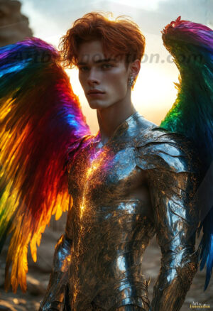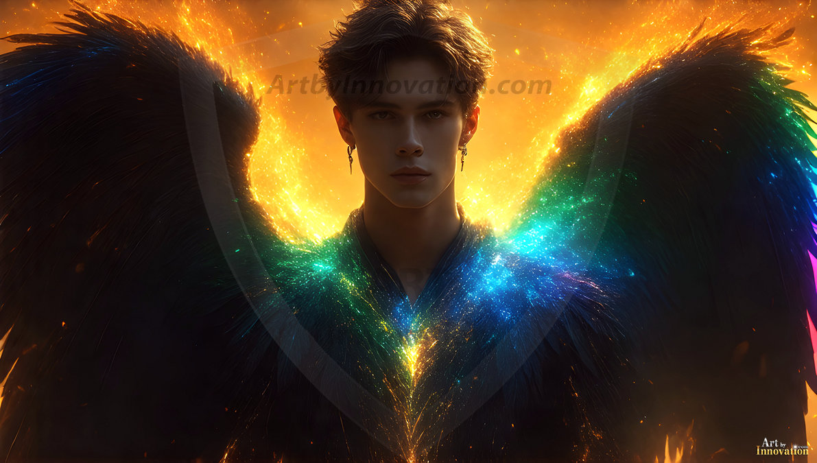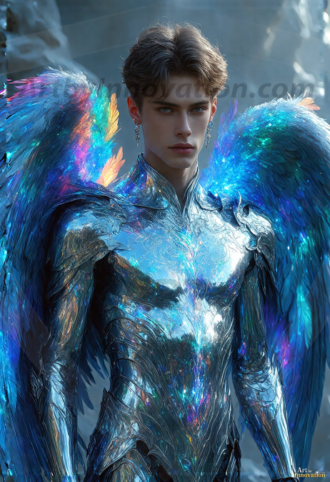 Heaven's Warriors descend. This AI-generated collection features stunningly handsome male angels with enormous, shimmering feathered wings — raw, untamed divine energy radiating from their chiseled forms. Set against heavenly skies, golden celestial cities, and ethereal cloudscapes, each angel exudes both breathtaking beauty and formidable divine power. Created using Flux.1 and ComfyUI by © Jeff Dupler | Art by Innovation | https://www.artbyinnovation.com