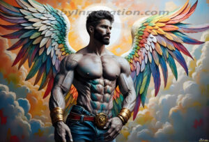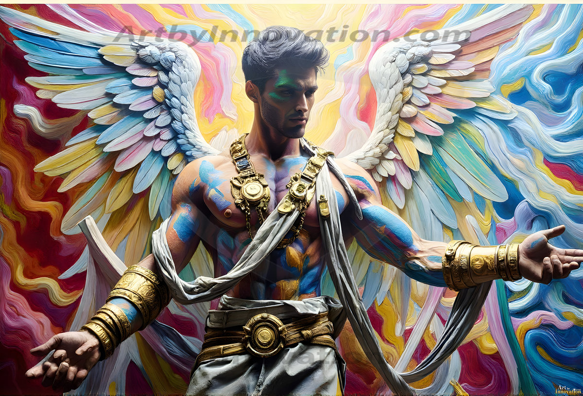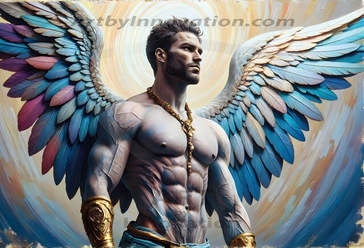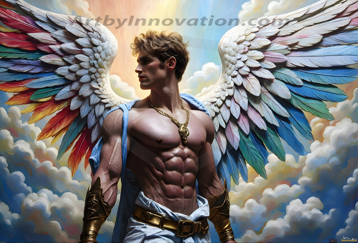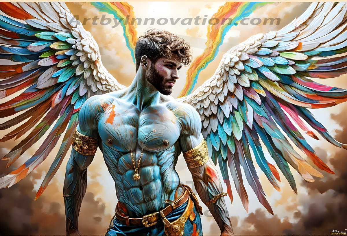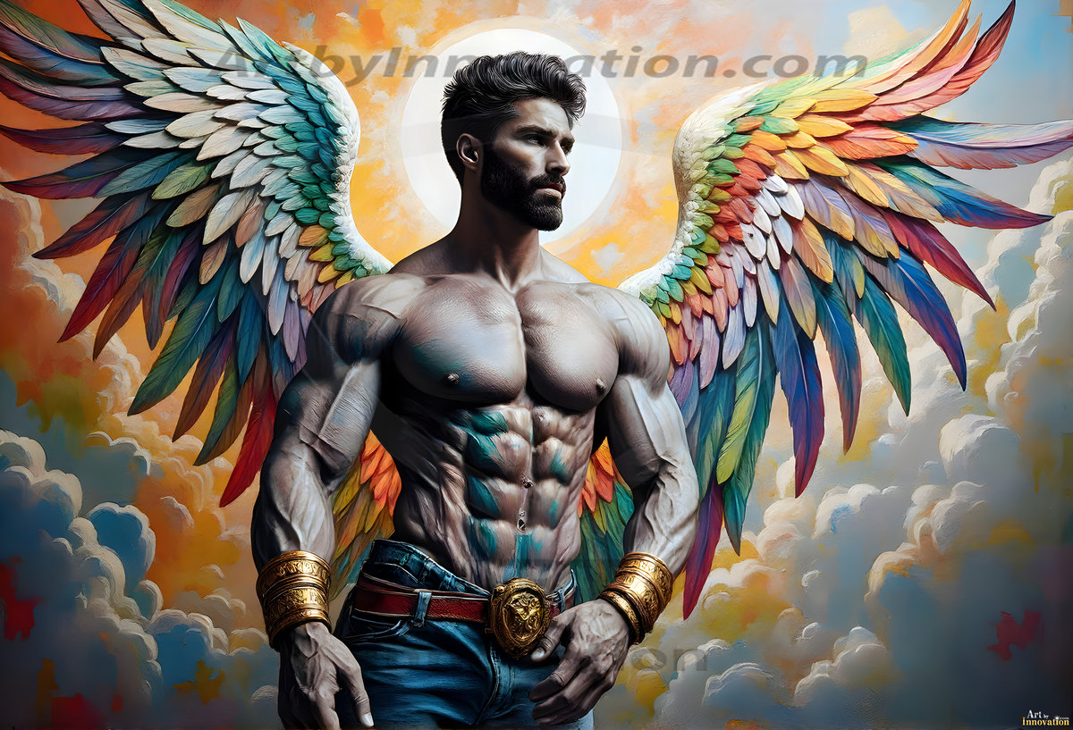 Where beauty meets the divine — in full color. This AI-generated collection features beautiful, handsome male angels with enormous, vibrantly colored shimmering wings that reflect and radiate the full spectrum of color. Raw, untamed divine energy emanates from each figure, drawing viewers in with an electrifying and captivating presence. Created using Flux.1 and ComfyUI by © Jeff Dupler | Art by Innovation | https://www.artbyinnovation.com