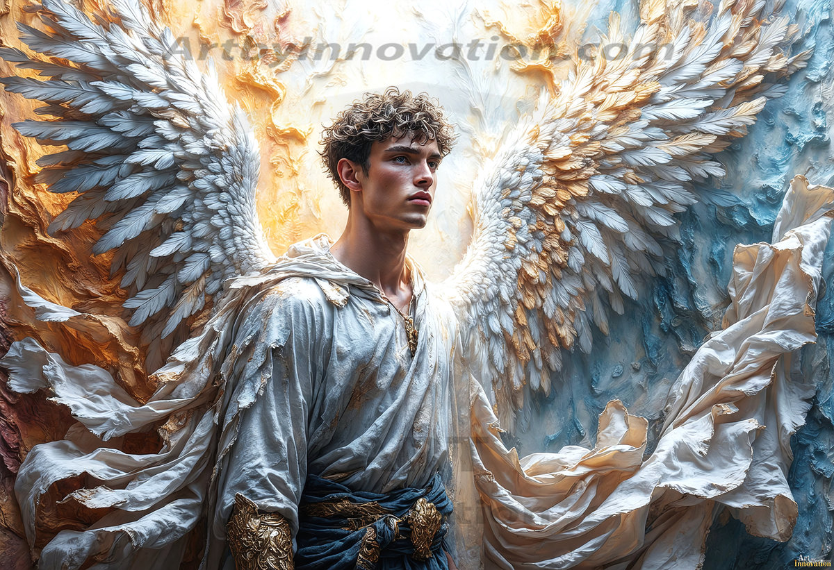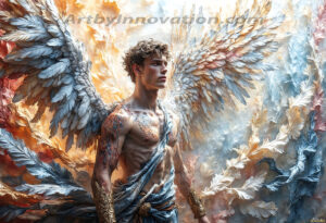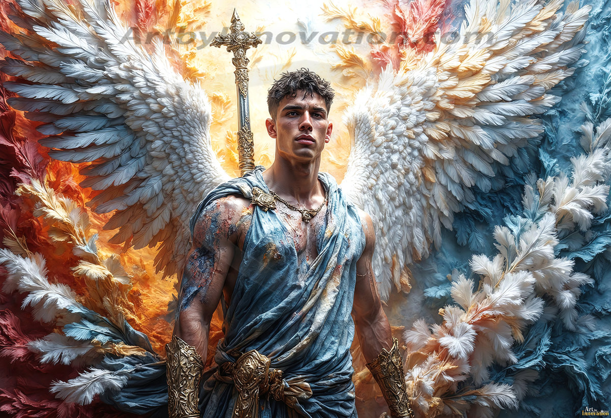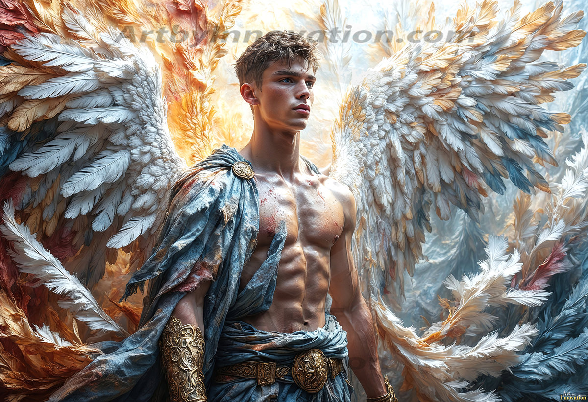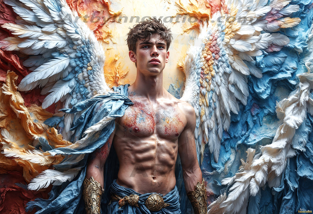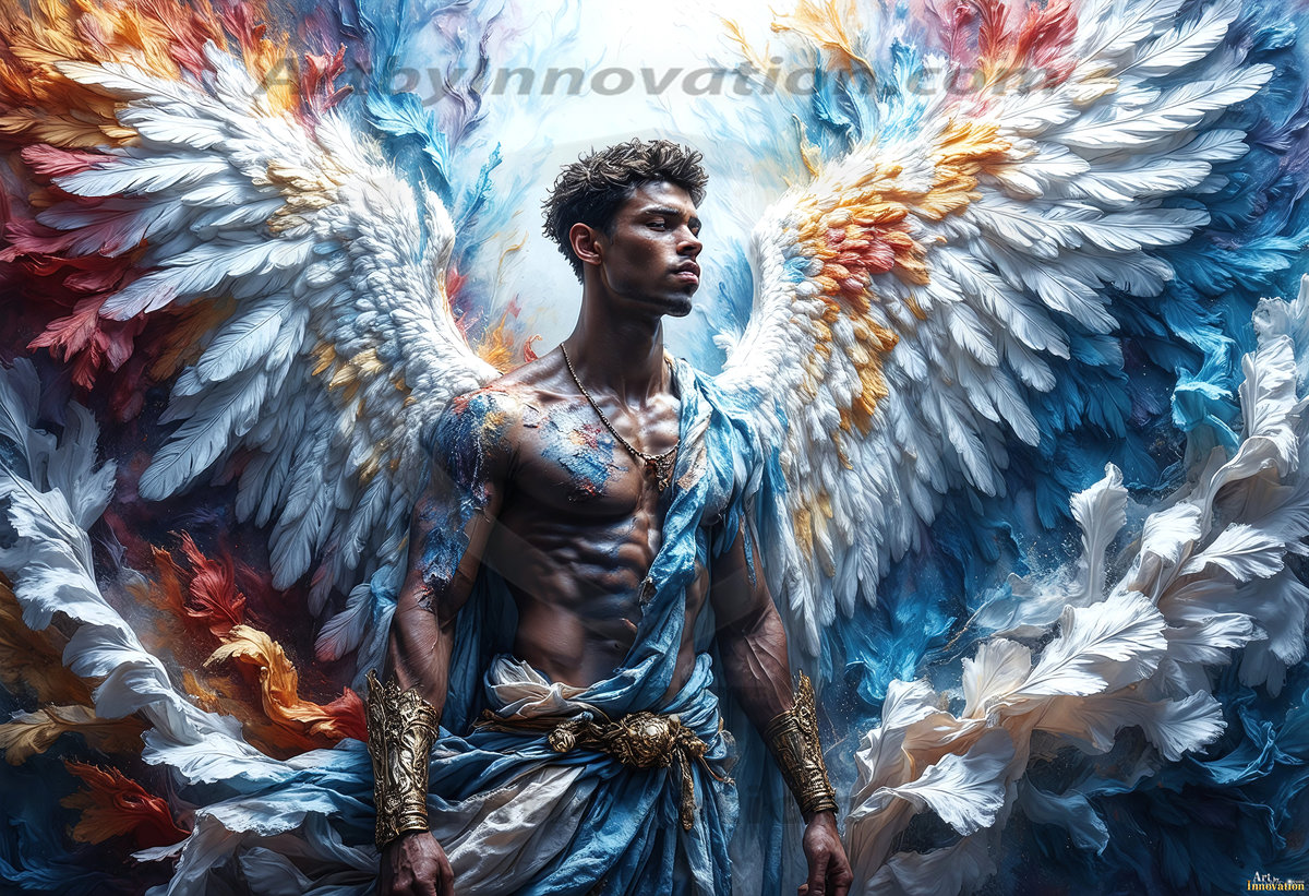 Where beauty meets the divine — in full color. This AI-generated collection features beautiful, handsome male angels with enormous, vibrantly colored shimmering wings that reflect and radiate the full spectrum of color. Raw, untamed divine energy emanates from each figure, drawing viewers in with an electrifying and captivating presence. Created using Flux.1 and ComfyUI by © Jeff Dupler | Art by Innovation | https://www.artbyinnovation.com