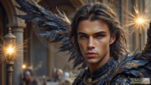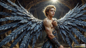 Fallen from grace — but never from beauty. This AI-generated dark angel collection features stunningly handsome fallen angels with massive black and silver feathered wings, set against gothic atmospheric backdrops of crumbling marble pillars, swirling crimson mists, and haunting desolate battlefields. Each image captures the raw, electrifying presence of a being between worlds — beautiful and terrifying in equal measure. Created using Flux.1 and ComfyUI by © Jeff Dupler | Art by Innovation | https://www.artbyinnovation.com