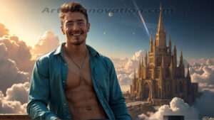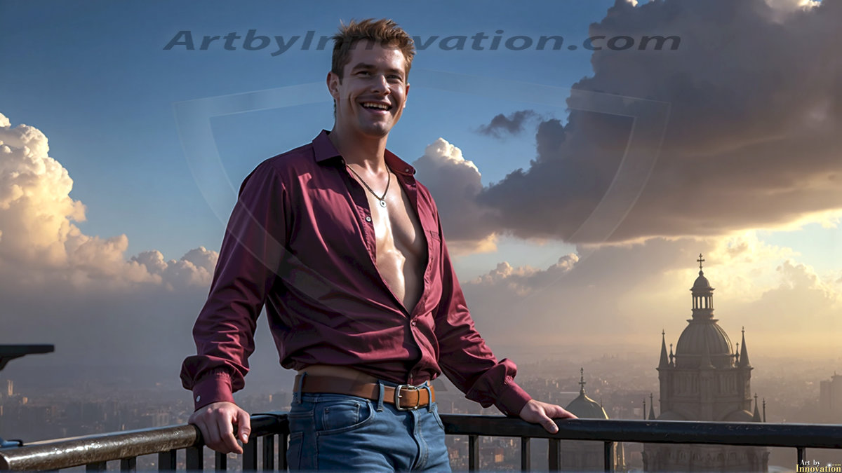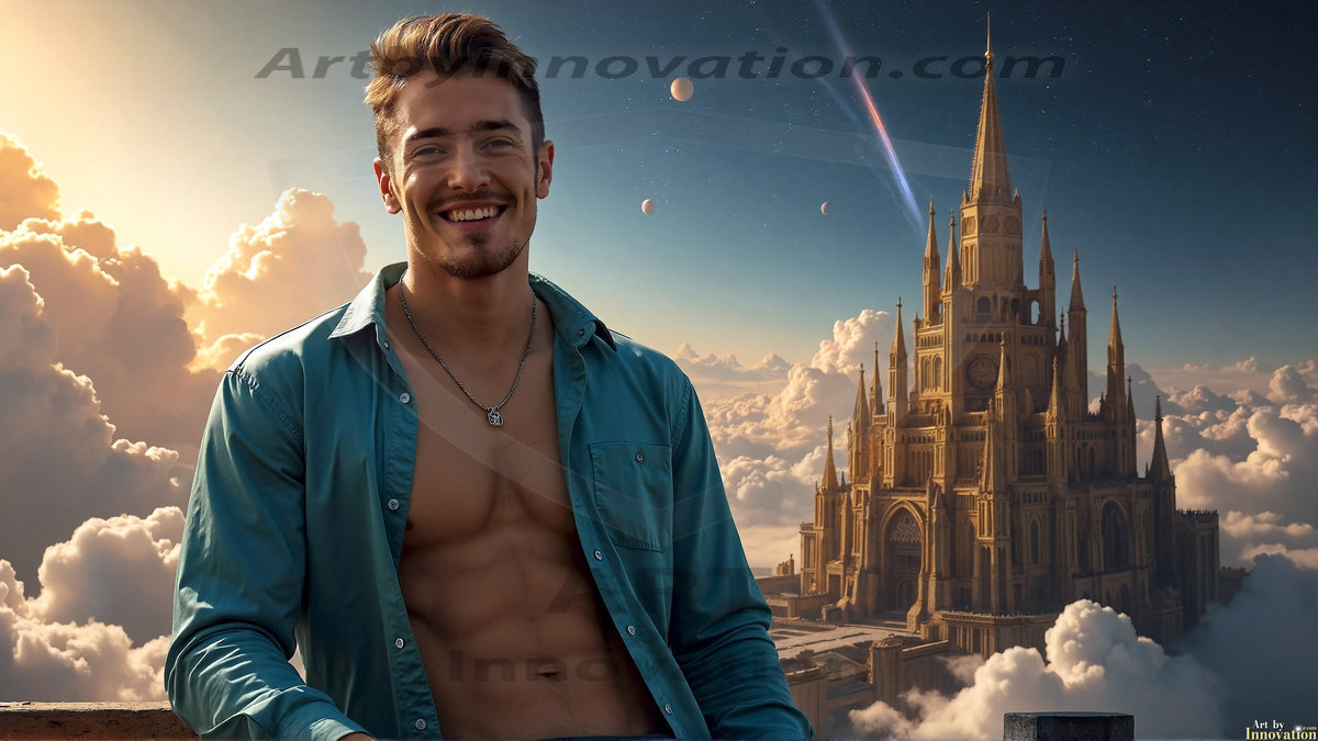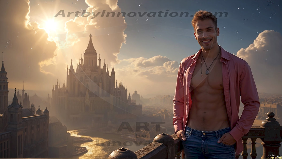 Welcome to the Golden City. This AI-generated collection features beautiful, glamorous, handsome men on balconies overlooking a breathtaking golden city in the heavens — massive majestic gothic architecture, golden rivers flowing to the edge of the galaxy, stars and constellations sparkling in a vast cosmic sky. Each image evokes a sense of reverence, freedom, and divine glory. Available in young men (teens and 20s), mature men, and Daddies editions. Created using Flux.1 and ComfyUI by © Jeff Dupler | Art by Innovation | https://www.artbyinnovation.com