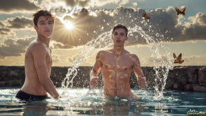 The best kind of company. This AI-generated collection celebrates male friendship — beautiful, handsome men sharing moments of laughter, adventure, and brotherhood. Two stunning guys, side by side, captured in photorealistic detail across 250+ images. Whether relaxing, exploring, or just hanging out, these best friends embody the joy and ease of true companionship. Created using Flux.1 and ComfyUI by © Jeff Dupler | Art by Innovation | https://www.artbyinnovation.com