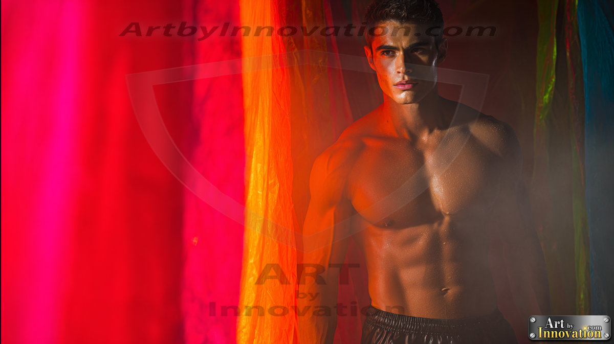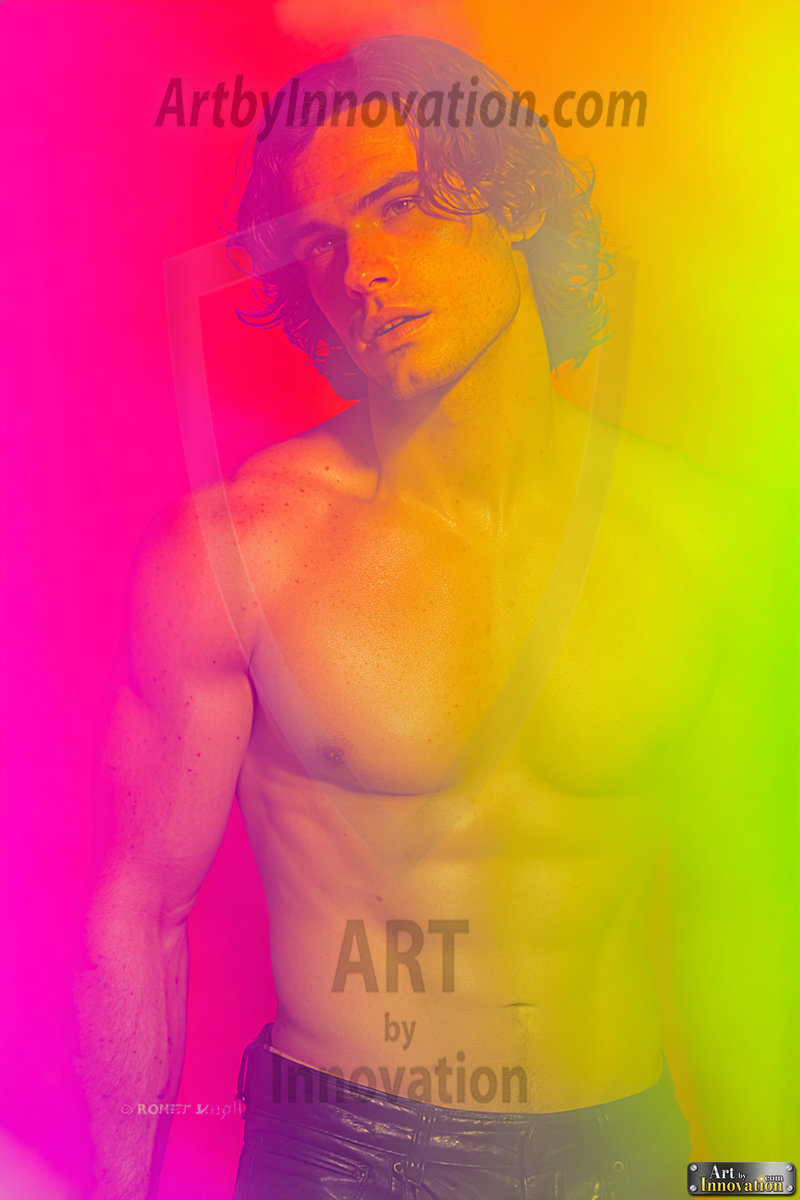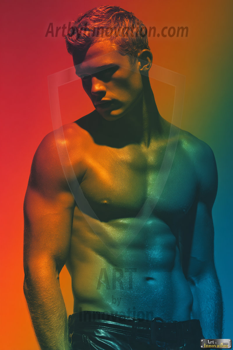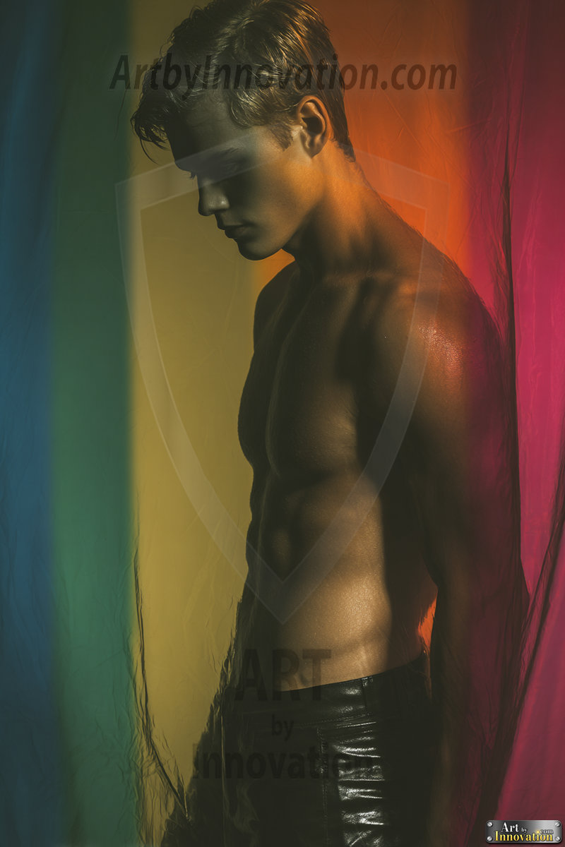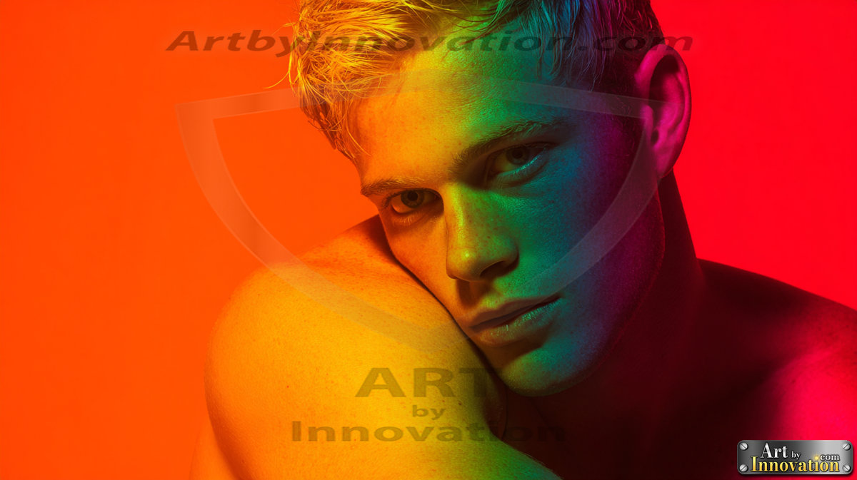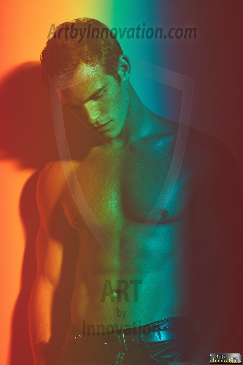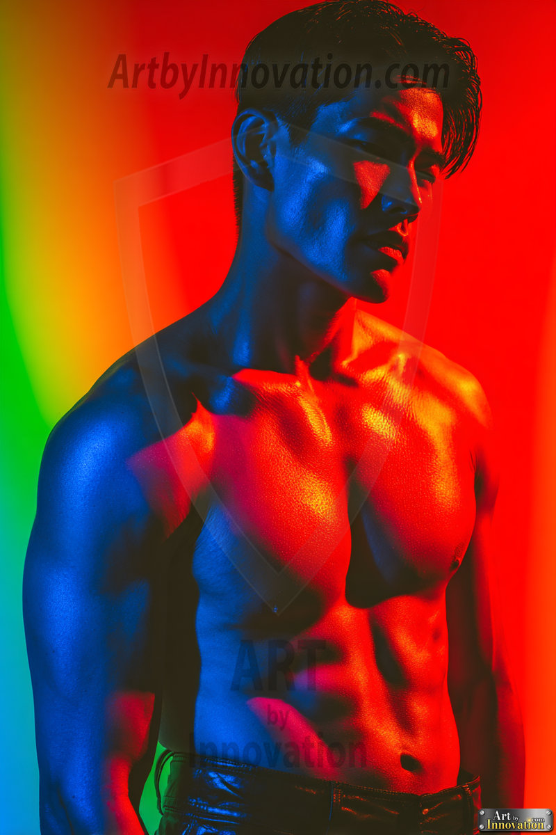 Every color of the rainbow. This AI-generated collection features beautiful, handsome men enveloped in, bathed in, and surrounded by a stunning full spectrum of vibrant colors — from the warm golds and reds to the cool blues and violets of the rainbow palette. Each image is a celebration of color, beauty, and the human form. Created using Flux.1 and ComfyUI by © Jeff Dupler | Art by Innovation | https://www.artbyinnovation.com