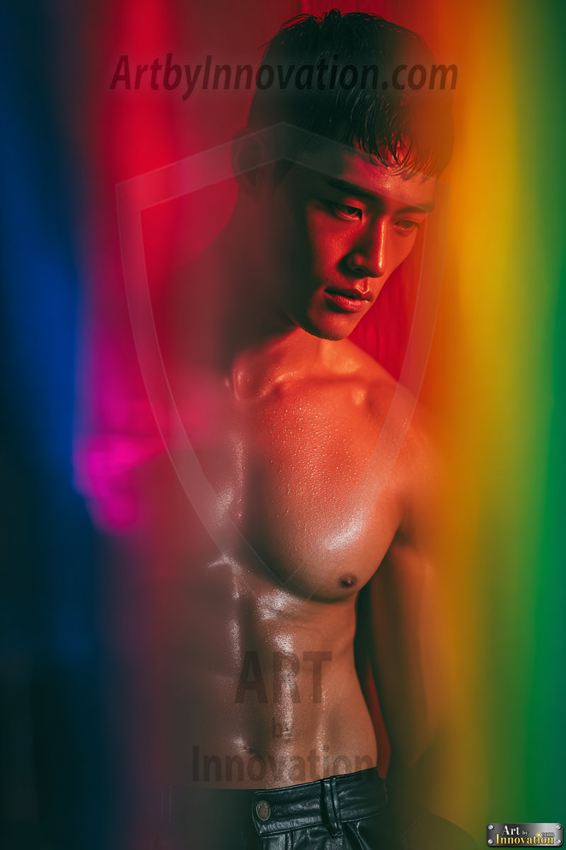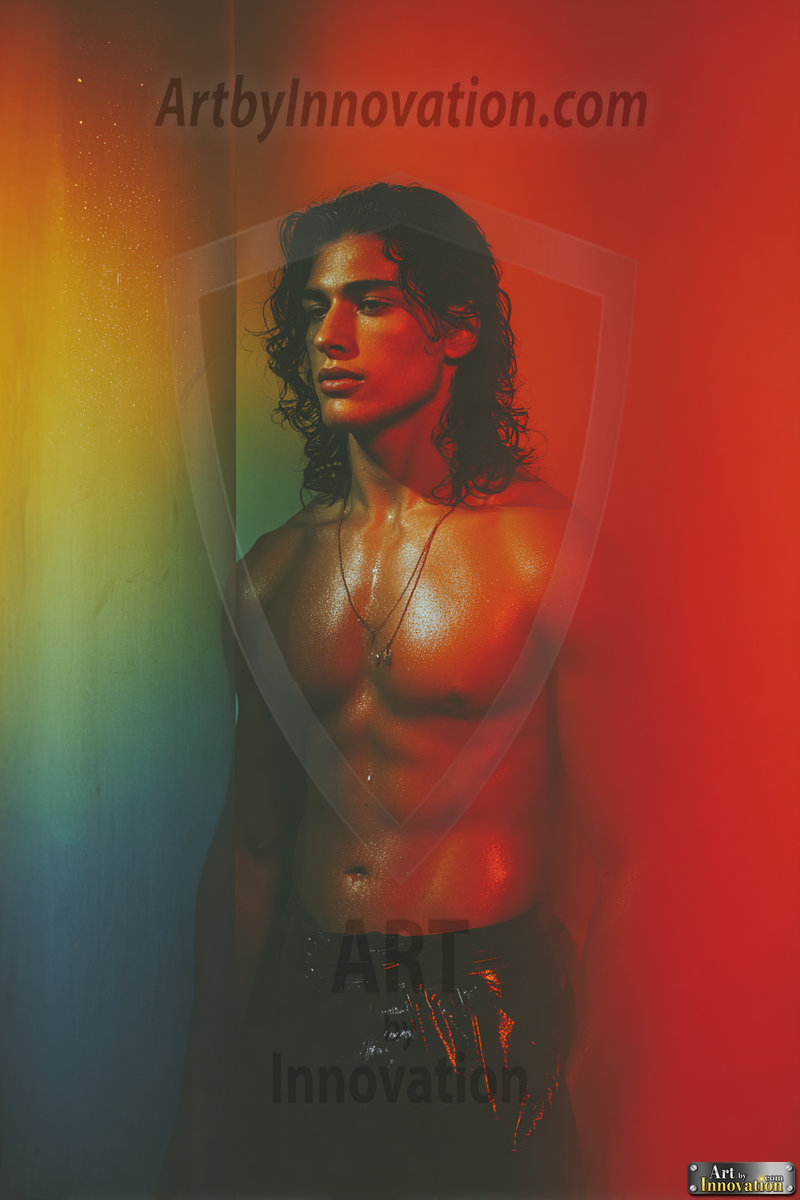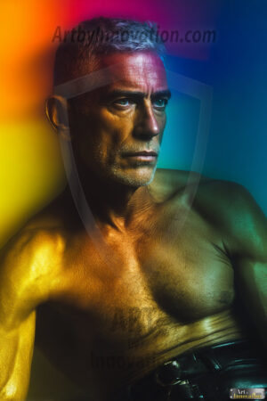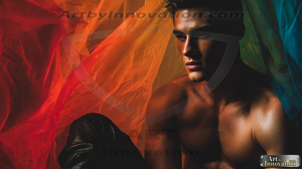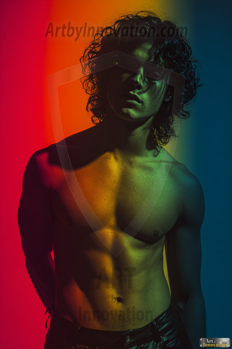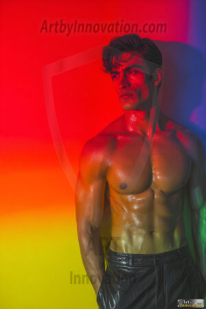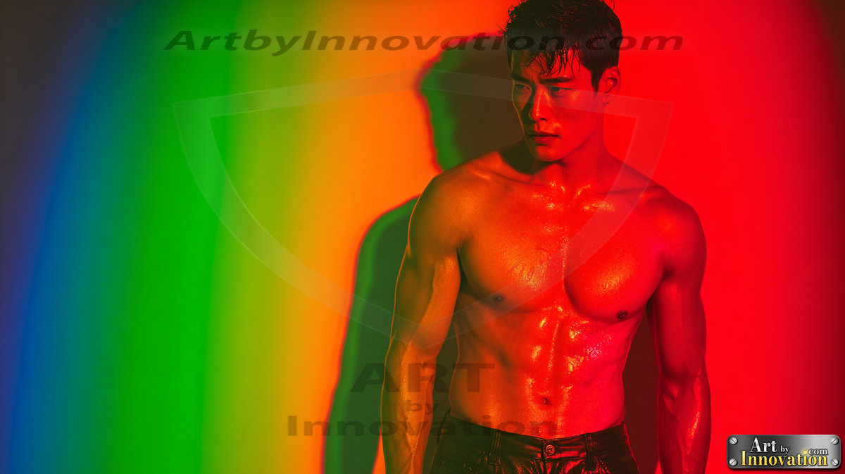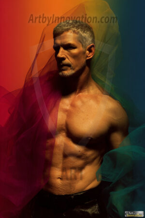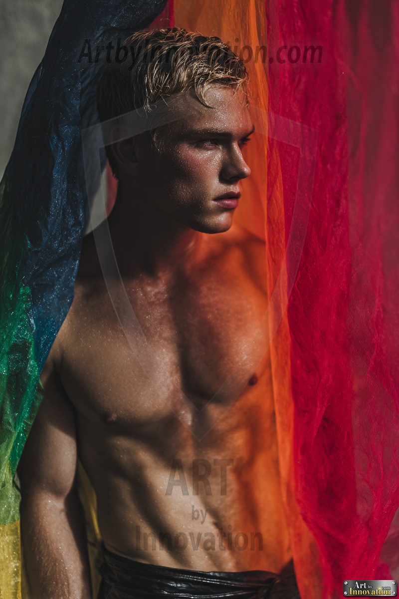 Every color of the rainbow. This AI-generated collection features beautiful, handsome men enveloped in, bathed in, and surrounded by a stunning full spectrum of vibrant colors — from the warm golds and reds to the cool blues and violets of the rainbow palette. Each image is a celebration of color, beauty, and the human form. Created using Flux.1 and ComfyUI by © Jeff Dupler | Art by Innovation | https://www.artbyinnovation.com