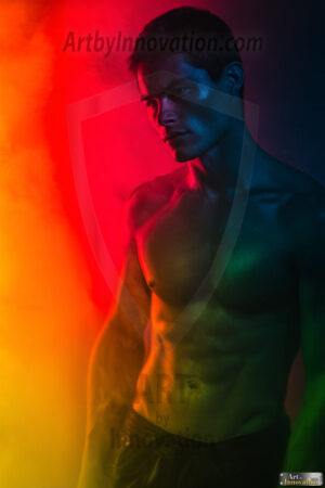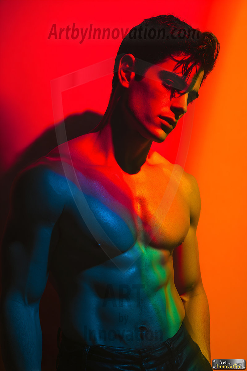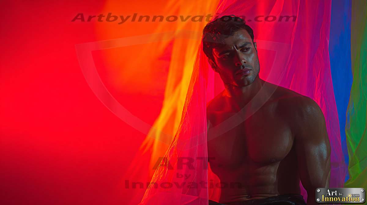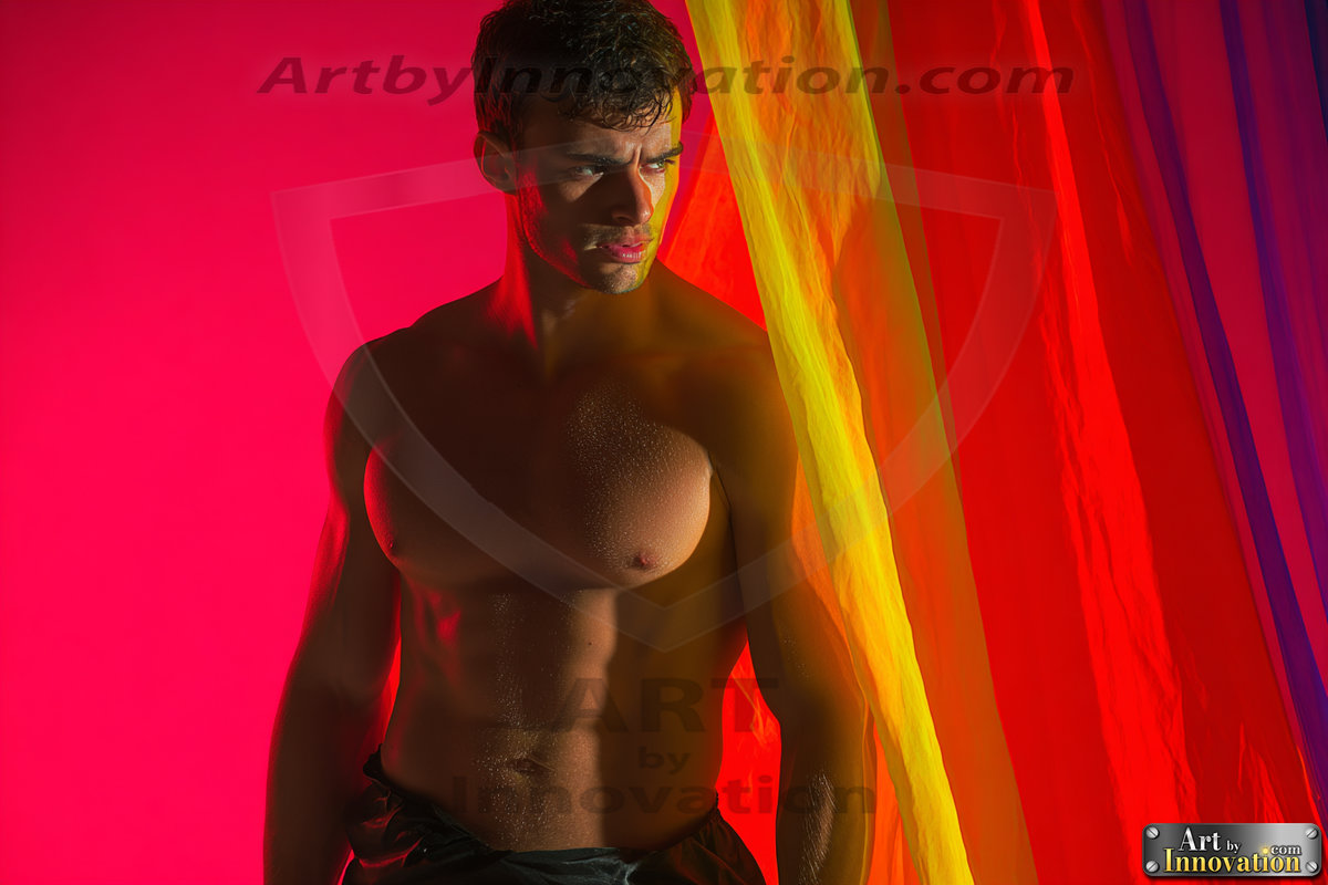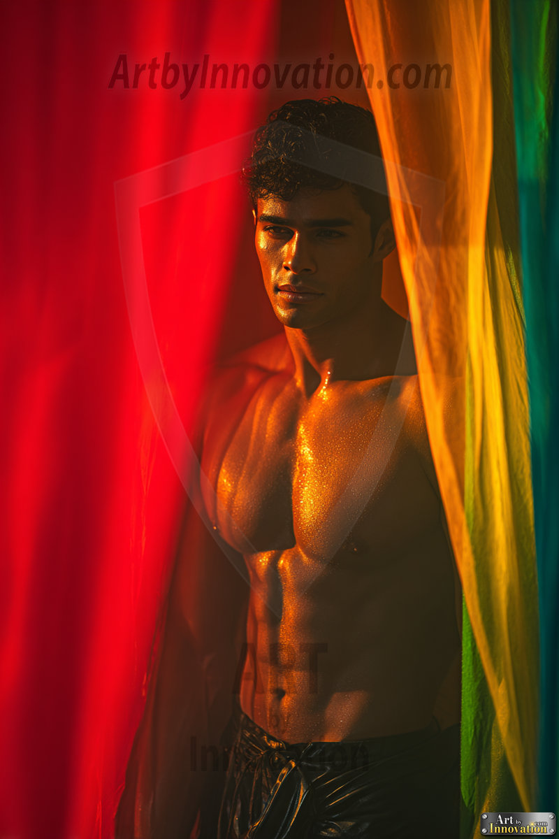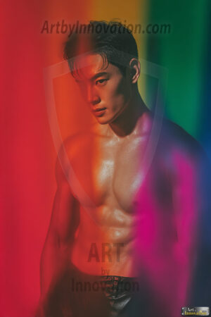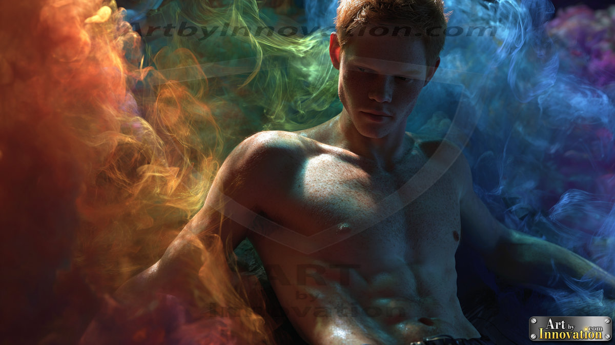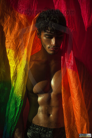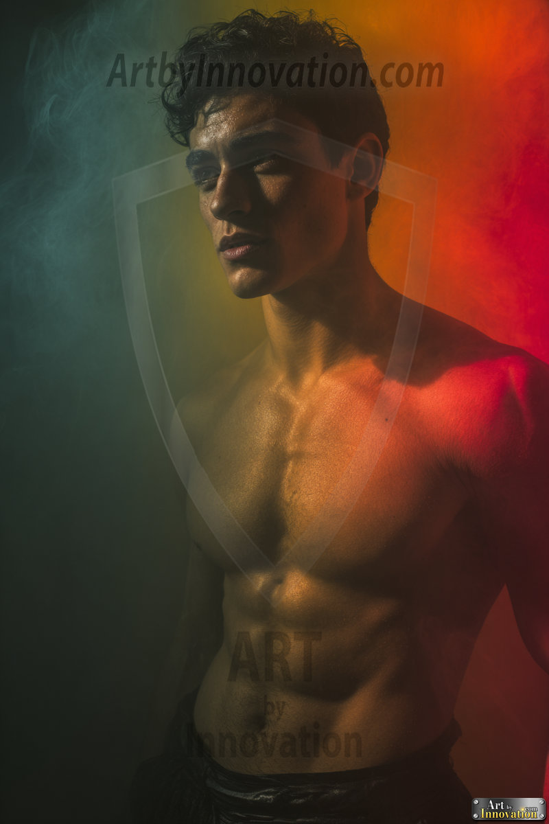Every color of the rainbow. This AI-generated collection features beautiful, handsome men enveloped in, bathed in, and surrounded by a stunning full spectrum of vibrant colors — from the warm golds and reds to the cool blues and violets of the rainbow palette. Each image is a celebration of color, beauty, and the human form. Created using Flux.1 and ComfyUI by © Jeff Dupler | Art by Innovation | https://www.artbyinnovation.com