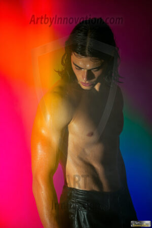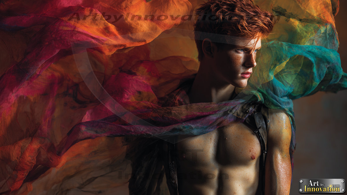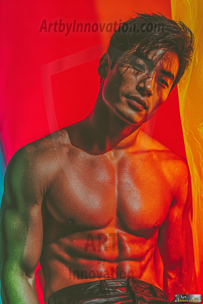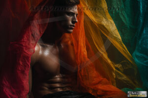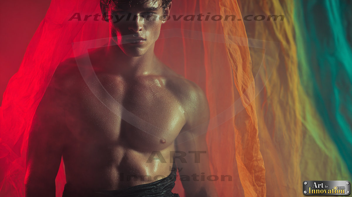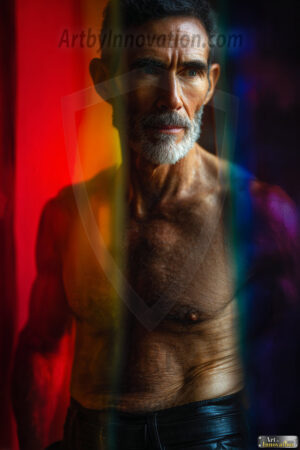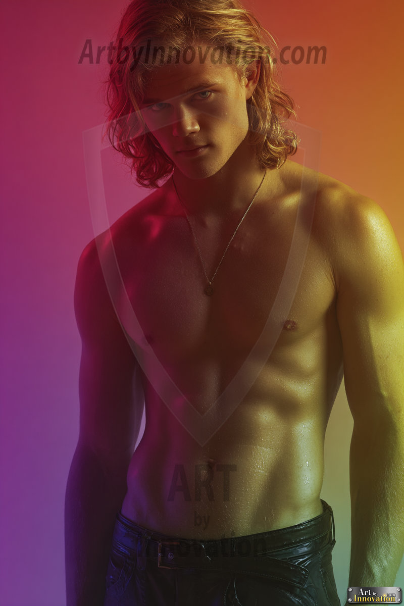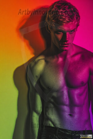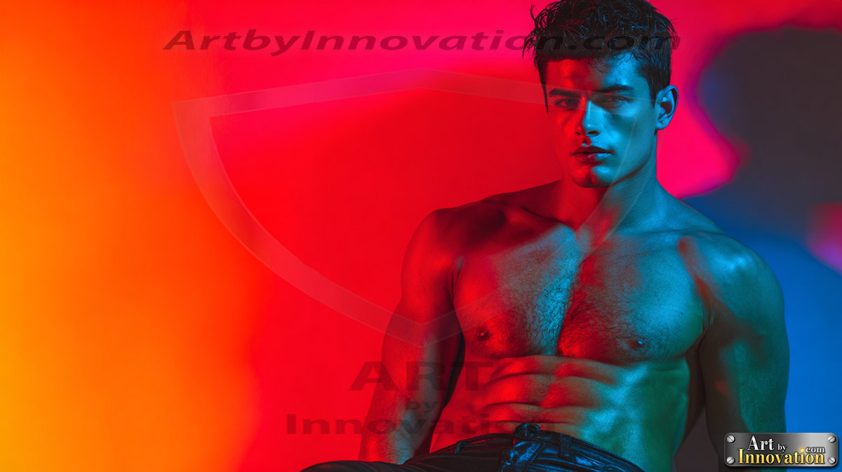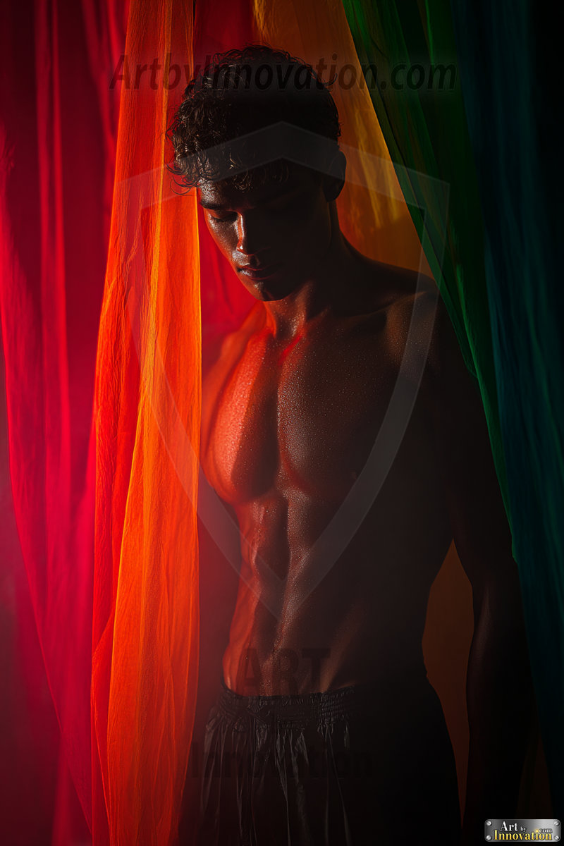 Every color of the rainbow. This AI-generated collection features beautiful, handsome men enveloped in, bathed in, and surrounded by a stunning full spectrum of vibrant colors — from the warm golds and reds to the cool blues and violets of the rainbow palette. Each image is a celebration of color, beauty, and the human form. Created using Flux.1 and ComfyUI by © Jeff Dupler | Art by Innovation | https://www.artbyinnovation.com