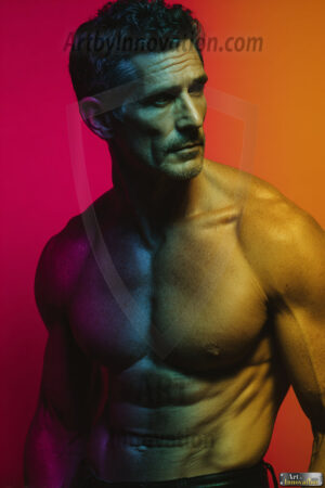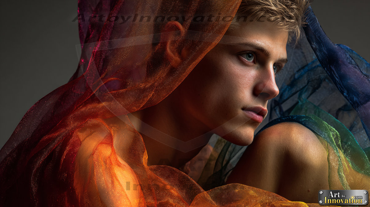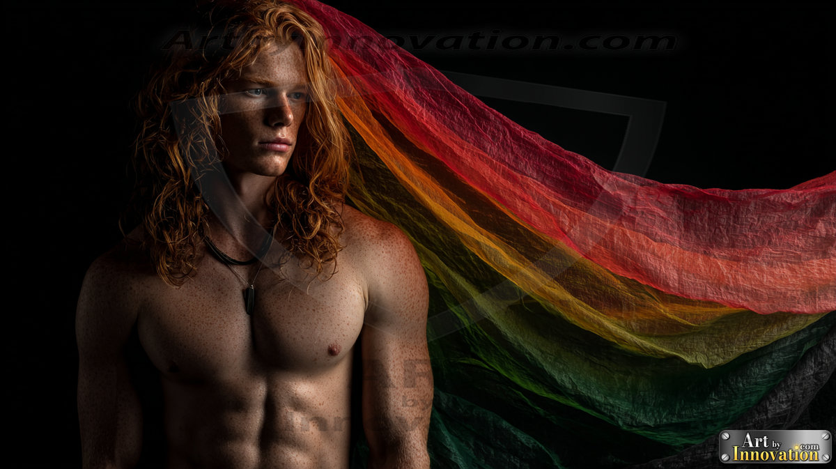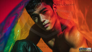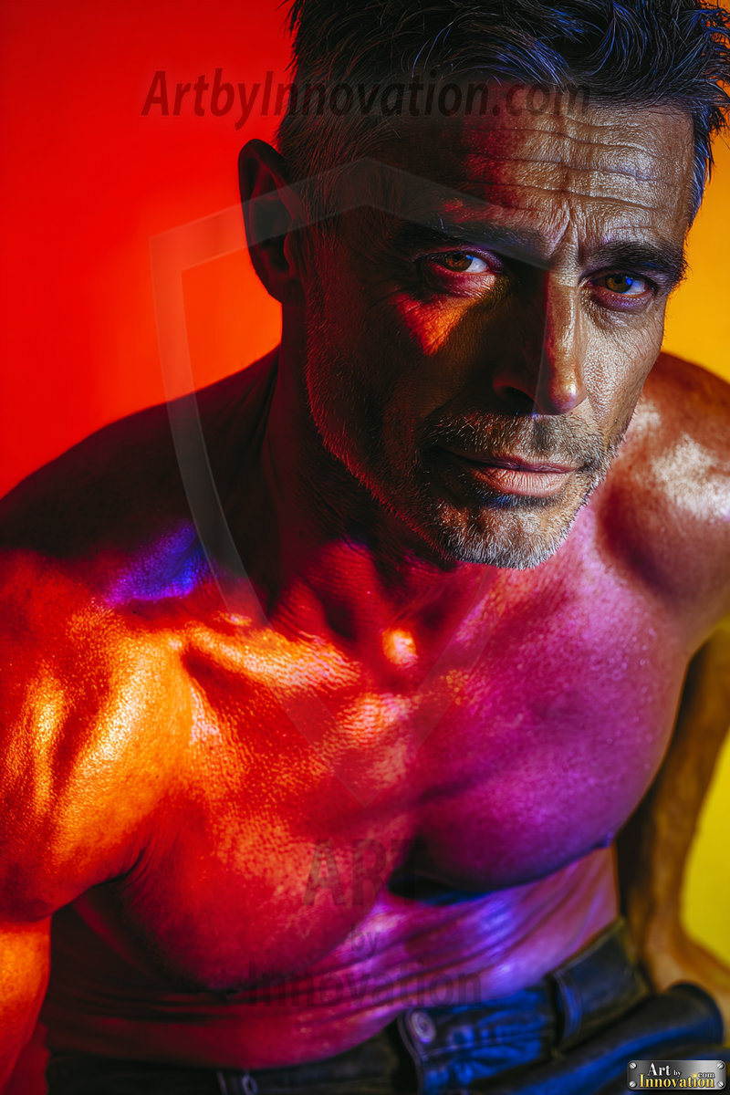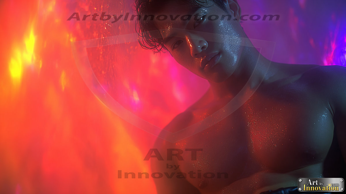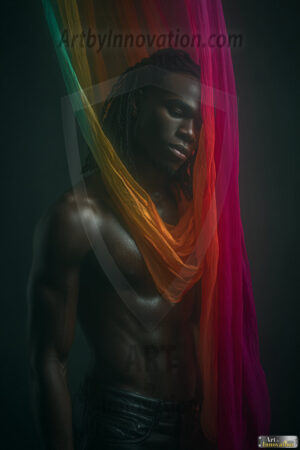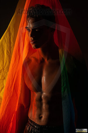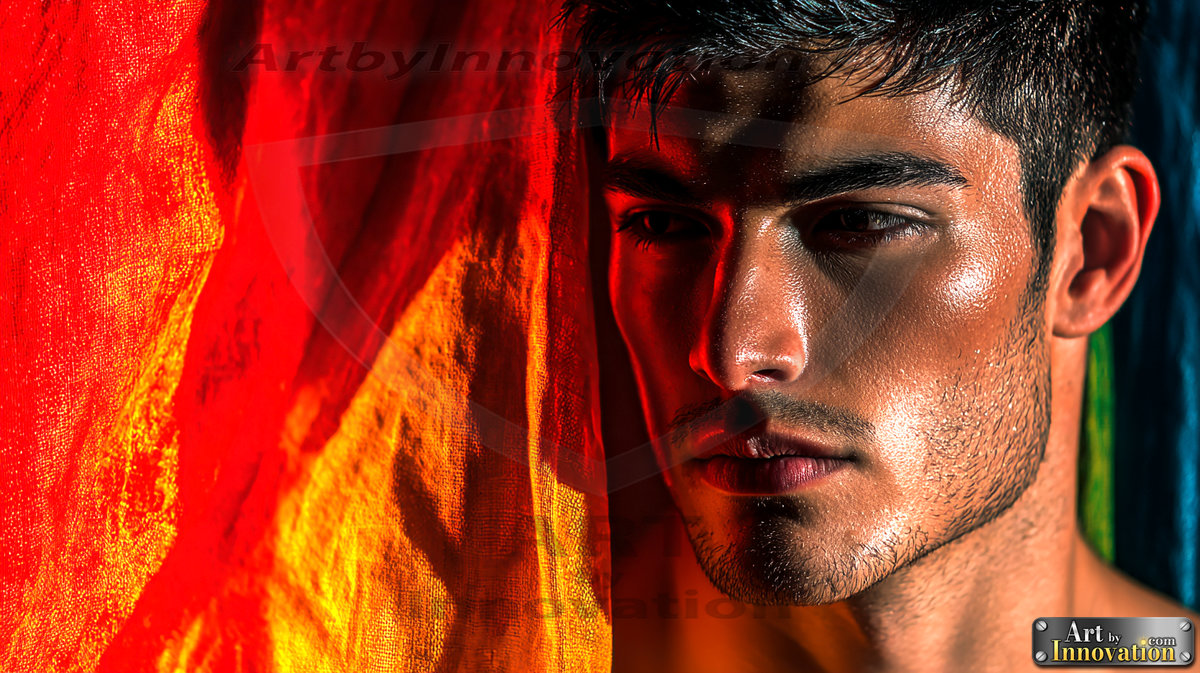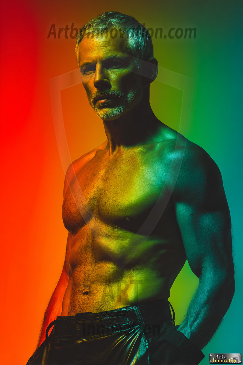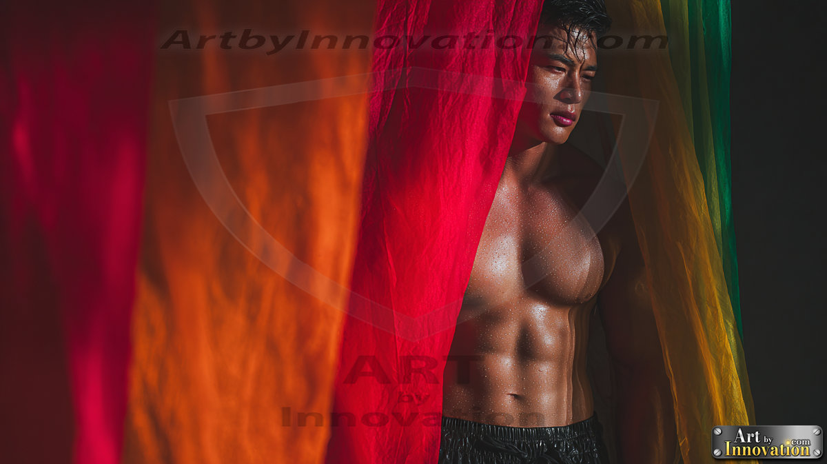 Every color of the rainbow. This AI-generated collection features beautiful, handsome men enveloped in, bathed in, and surrounded by a stunning full spectrum of vibrant colors — from the warm golds and reds to the cool blues and violets of the rainbow palette. Each image is a celebration of color, beauty, and the human form. Created using Flux.1 and ComfyUI by © Jeff Dupler | Art by Innovation | https://www.artbyinnovation.com