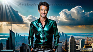 AI-generated LGBTQ+ Pride celebration art — handsome men at vibrant Pride parades, rainbow colors, and celebrating love and community.