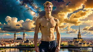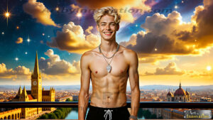 Handsome AI-generated male golden angels with enormous golden wings and radiant divine halo lighting — God’s most beautiful warriors.