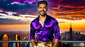 AI-generated abstract art — hot handsome men covered in colorful body paint explosions, full of joy and rainbow color.