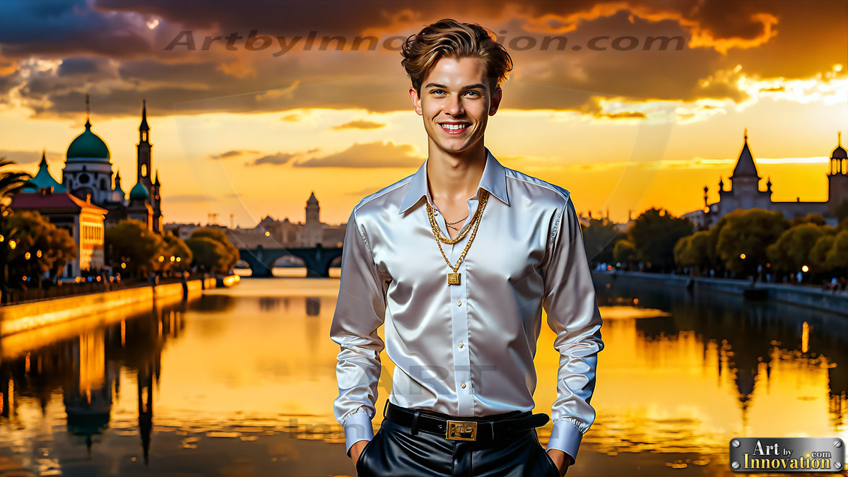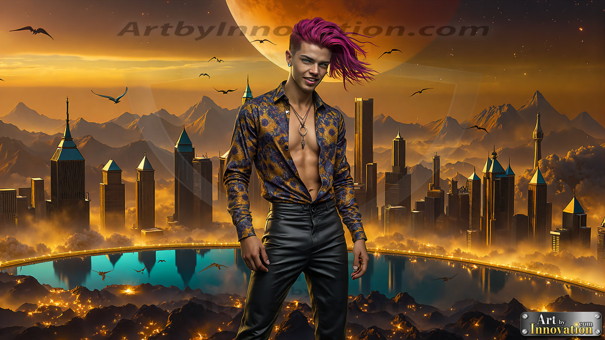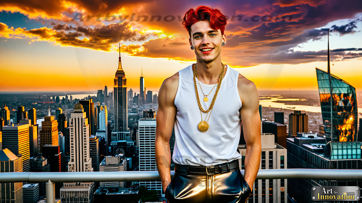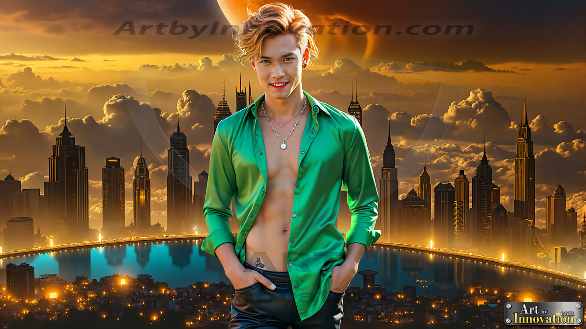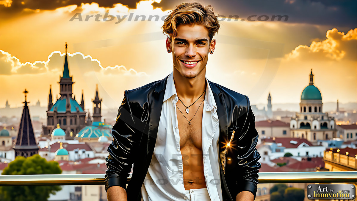 The enhanced Golden City Collection v2 — AI-generated handsome men on heavenly balconies, elevated quality. 255 images.