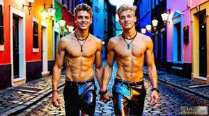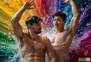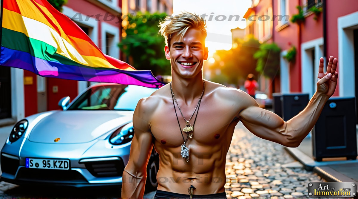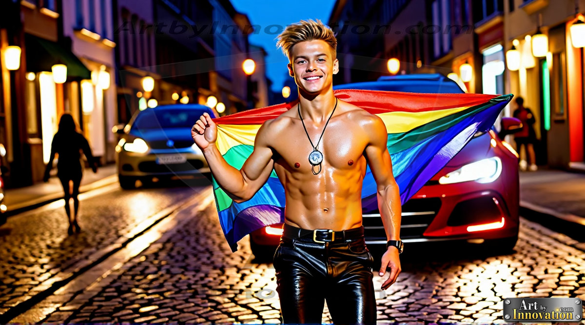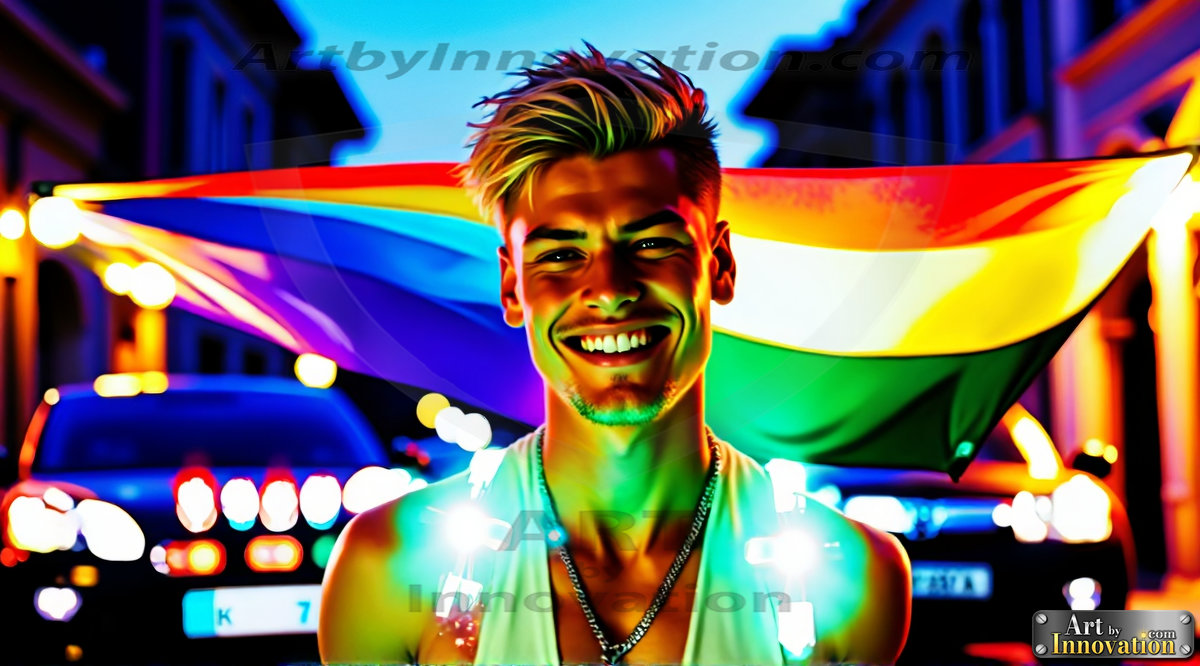 Pride is a celebration, a protest, and a declaration of love — all at once. This AI-generated collection captures the vibrant energy of LGBTQ+ Pride celebrations: handsome men walking boldly in Pride parades, embellished with rainbow colors, waving flags, and celebrating their community with joy and confidence. From interactive rainbow designs to intimate love scenes and parade march photography, this gallery has it all. Created using Flux.1 and ComfyUI by © Jeff Dupler | Art by Innovation | https://www.artbyinnovation.com