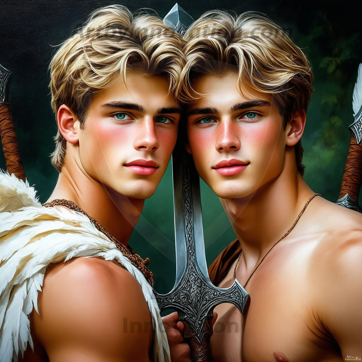 AI-generated LGBTQ Pride art — beautiful handsome men embellished with the vibrant rainbow colors of the gay pride flag. 500+ images.