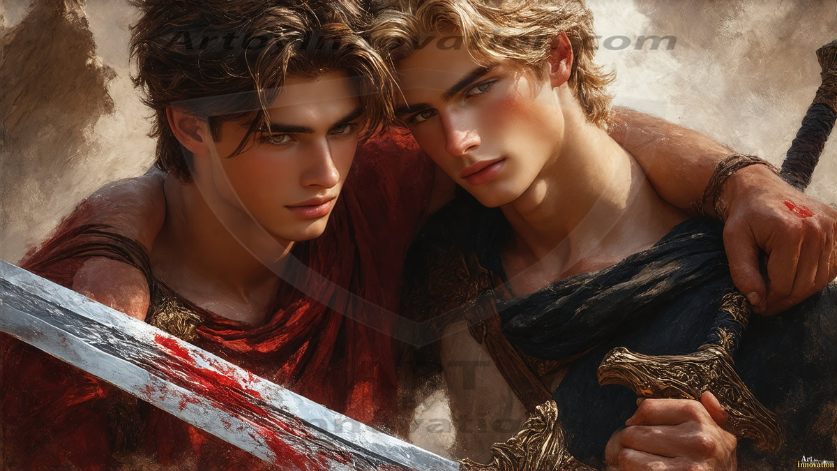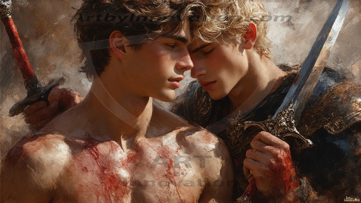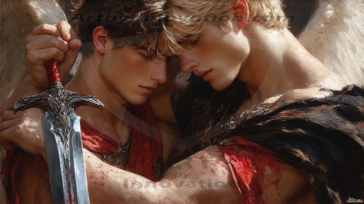 AI-generated LGBTQ Pride art — beautiful handsome men embellished with the vibrant rainbow colors of the gay pride flag. 500+ images.