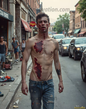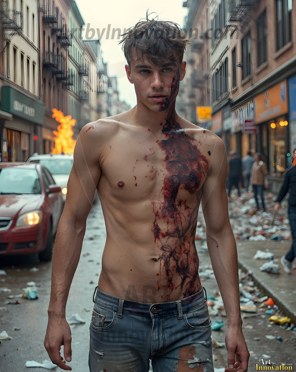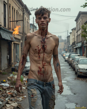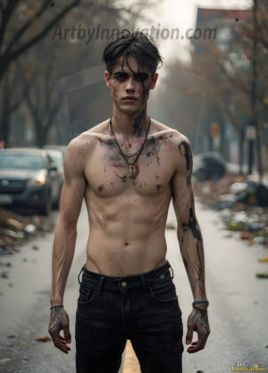 The apocalypse never looked this good. This AI-generated dark fantasy collection features handsome young male zombies in dramatic, cinematic apocalyptic settings — beautiful faces in various states of dark undead transformation, set against haunting desolate ruins and hellscapes. Equal parts beautiful and terrifying. Part of the Dark & Legendary Collection. Created using Flux.1 and ComfyUI by © Jeff Dupler | Art by Innovation | https://www.artbyinnovation.com