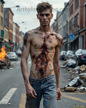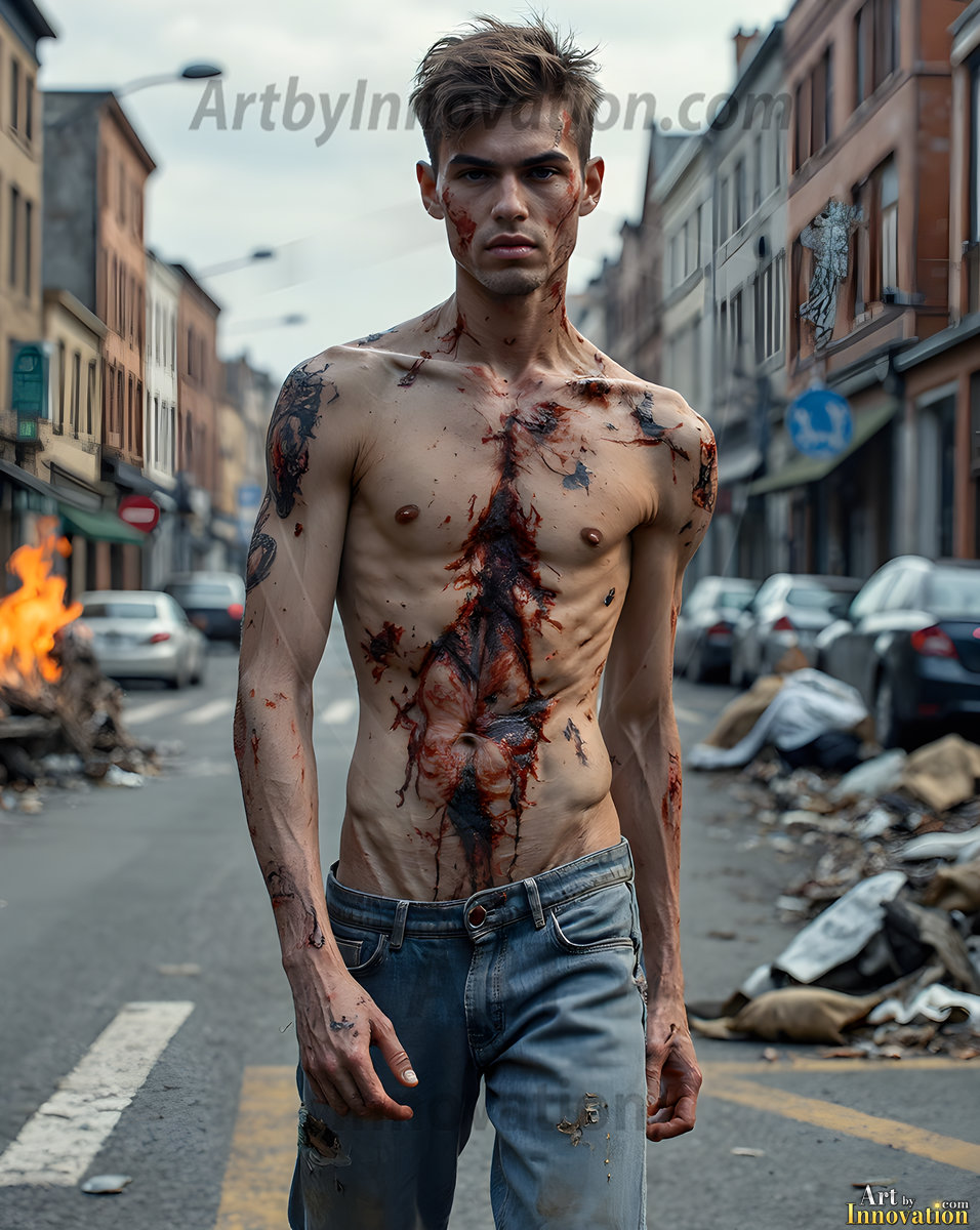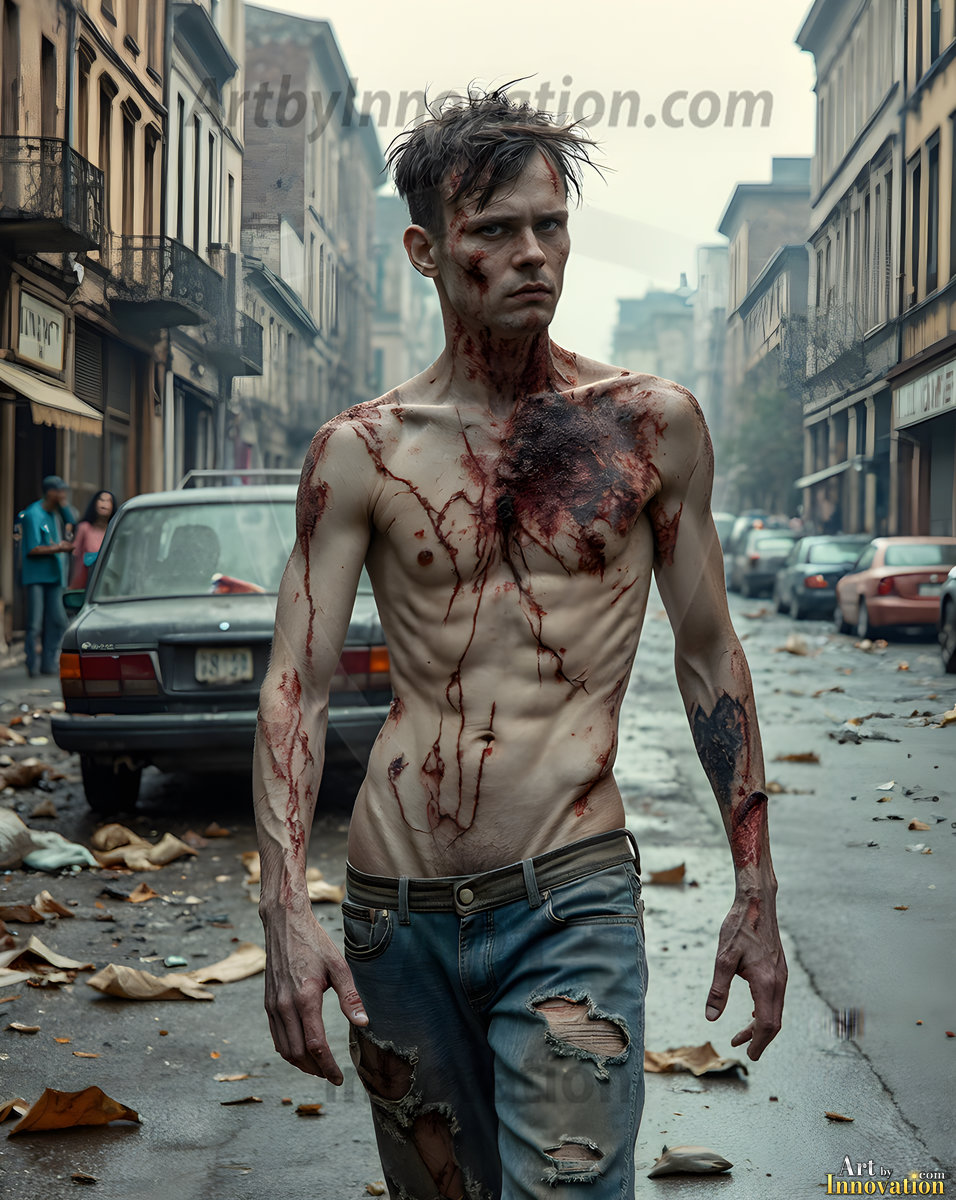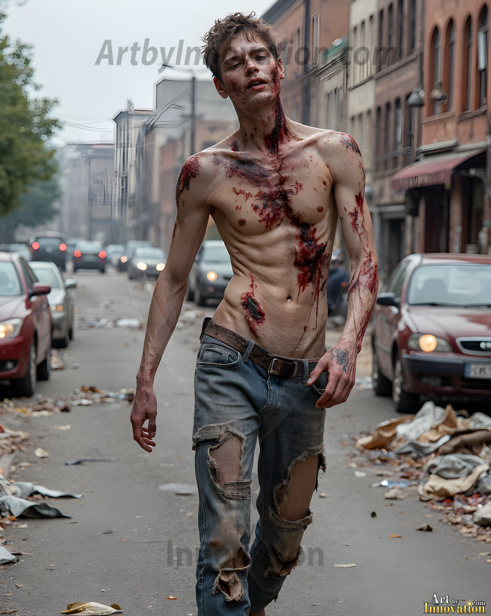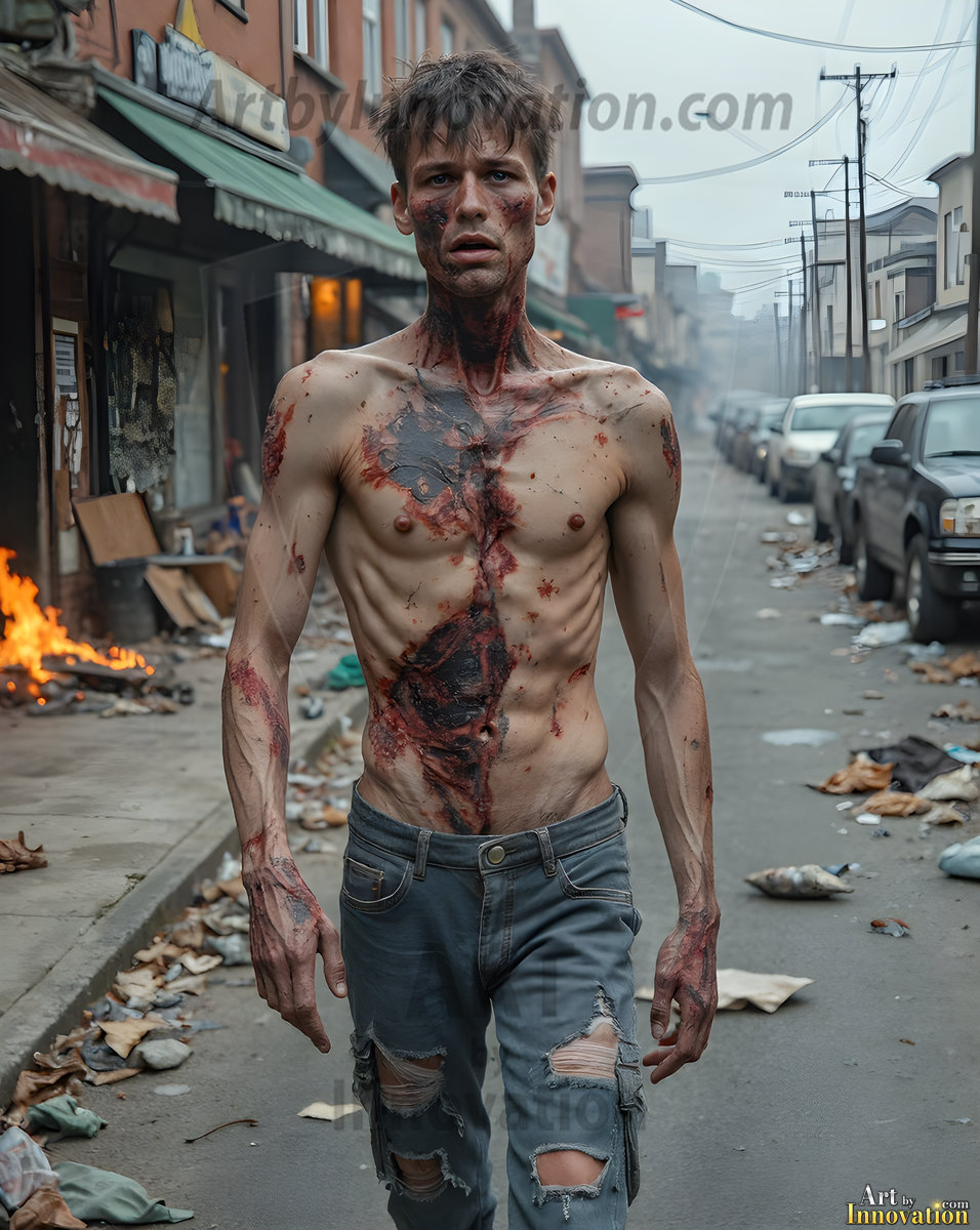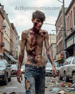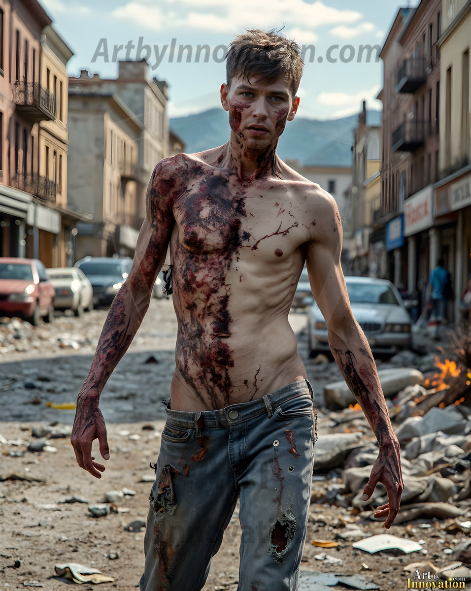 The apocalypse never looked this good. This AI-generated dark fantasy collection features handsome young male zombies in dramatic, cinematic apocalyptic settings — beautiful faces in various states of dark undead transformation, set against haunting desolate ruins and hellscapes. Equal parts beautiful and terrifying. Part of the Dark & Legendary Collection. Created using Flux.1 and ComfyUI by © Jeff Dupler | Art by Innovation | https://www.artbyinnovation.com