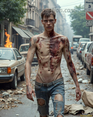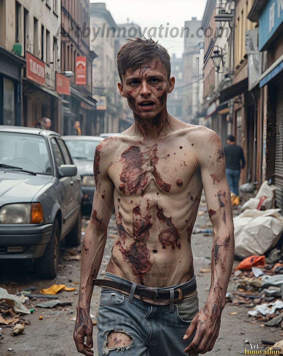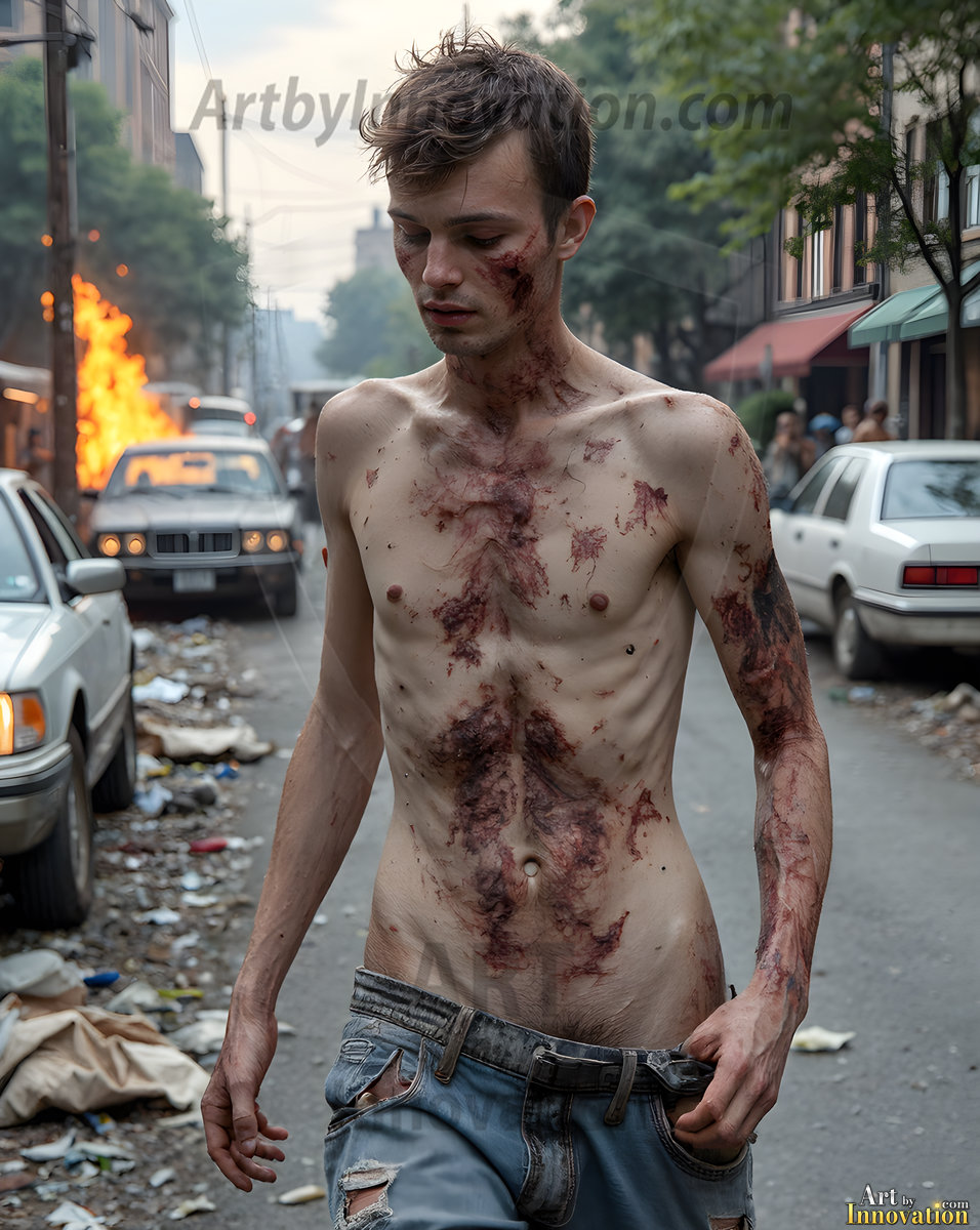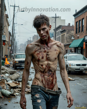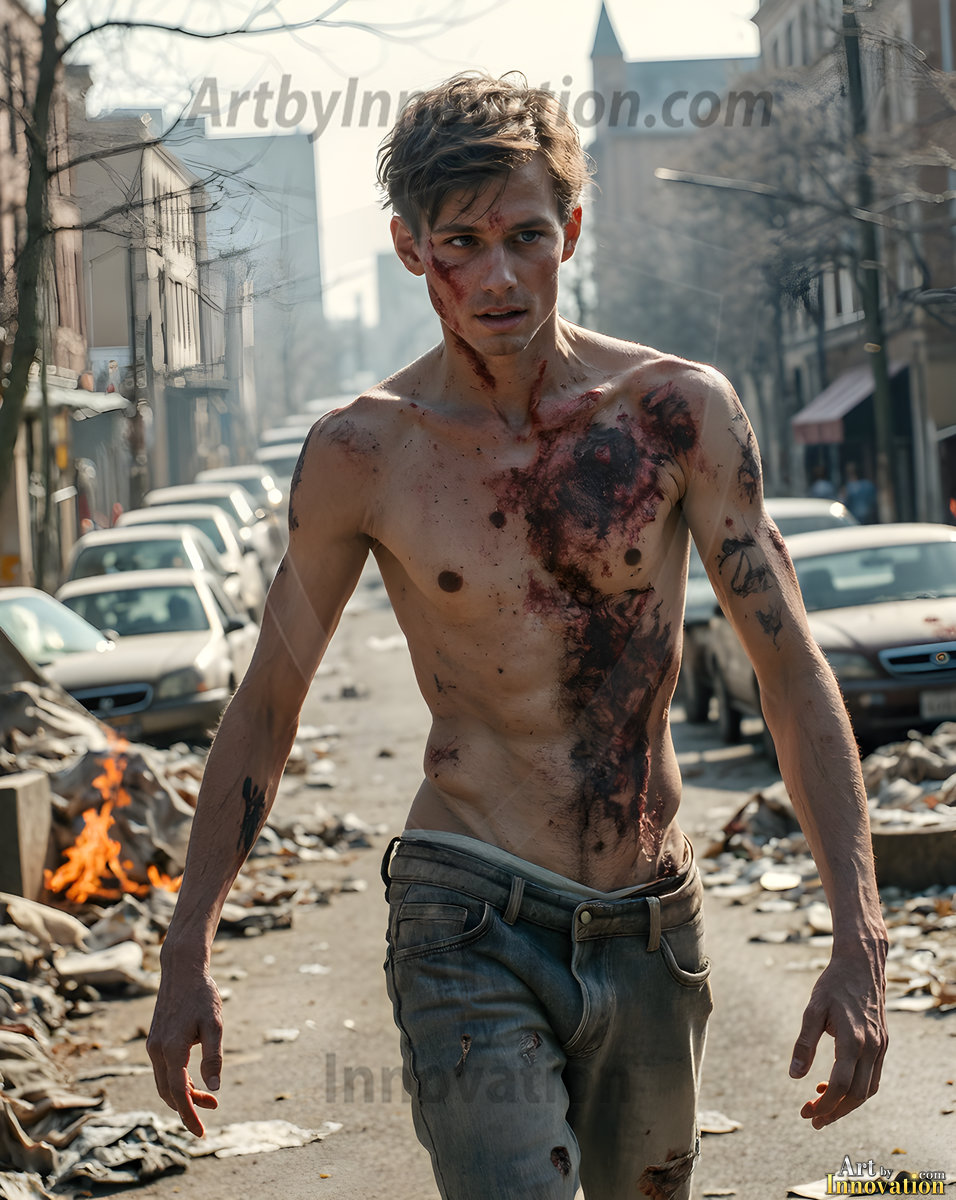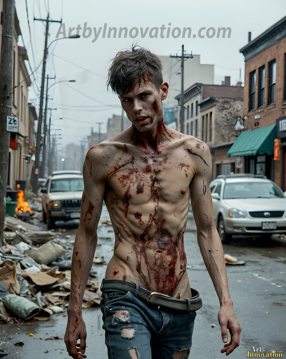 The apocalypse never looked this good. This AI-generated dark fantasy collection features handsome young male zombies in dramatic, cinematic apocalyptic settings — beautiful faces in various states of dark undead transformation, set against haunting desolate ruins and hellscapes. Equal parts beautiful and terrifying. Part of the Dark & Legendary Collection. Created using Flux.1 and ComfyUI by © Jeff Dupler | Art by Innovation | https://www.artbyinnovation.com