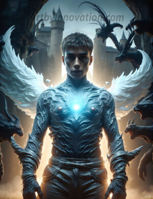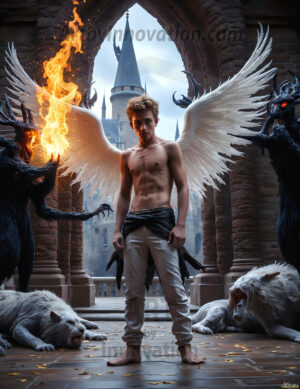 Standing before you is a prince and his dragon. This AI-generated collection features handsome, shirtless young princes with muscular physiques alongside their magnificent dragons — from the obsidian-scaled Bahamut with silver wings, to golden dragons sleeping in ancient caves. Each image blends the beauty of the male form with the raw majesty of dragonkind, set…