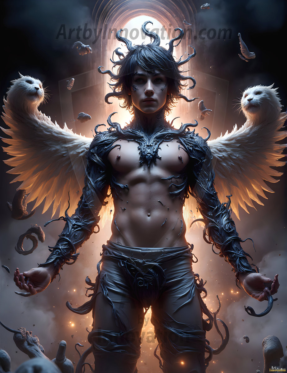 Where beauty meets the divine — in full color. This AI-generated collection features beautiful, handsome male angels with enormous, vibrantly colored shimmering wings that reflect and radiate the full spectrum of color. Raw, untamed divine energy emanates from each figure, drawing viewers in with an electrifying and captivating presence. Created using Flux.1 and ComfyUI by…