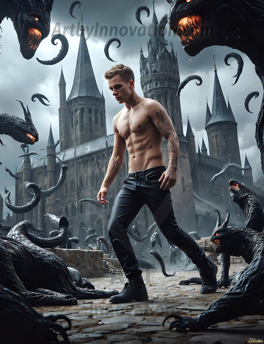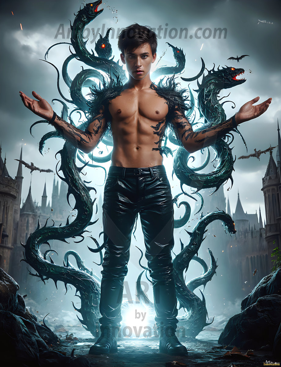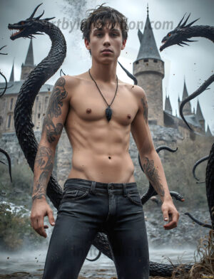 Standing before you is a prince and his dragon. This AI-generated collection features handsome, shirtless young princes with muscular physiques alongside their magnificent dragons — from the obsidian-scaled Bahamut with silver wings, to golden dragons sleeping in ancient caves. Each image blends the beauty of the male form with the raw majesty of dragonkind, set…