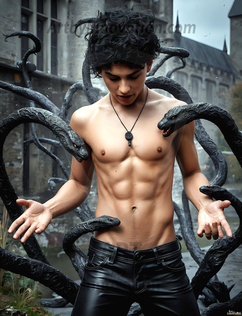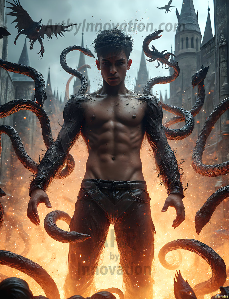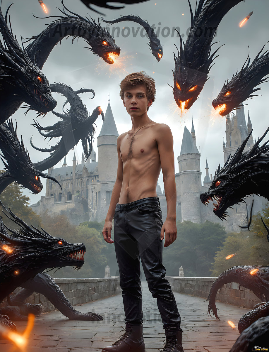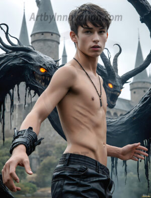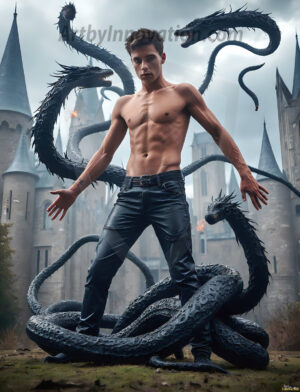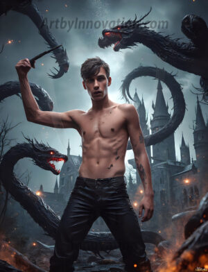 Standing before you is a prince and his dragon. This AI-generated collection features handsome, shirtless young princes with muscular physiques alongside their magnificent dragons — from the obsidian-scaled Bahamut with silver wings, to golden dragons sleeping in ancient caves. Each image blends the beauty of the male form with the raw majesty of dragonkind, set…
