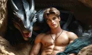 Standing before you is a prince and his dragon. This AI-generated collection features handsome, shirtless young princes with muscular physiques alongside their magnificent dragons — from the obsidian-scaled Bahamut with silver wings, to golden dragons sleeping in ancient caves. Each image blends the beauty of the male form with the raw majesty of dragonkind, set against breathtaking fantasy backdrops. Created using Flux.1, ComfyUI, Stable Diffusion, and refined with Adobe Photoshop by © Jeff Dupler | Art by Innovation | https://www.artbyinnovation.com