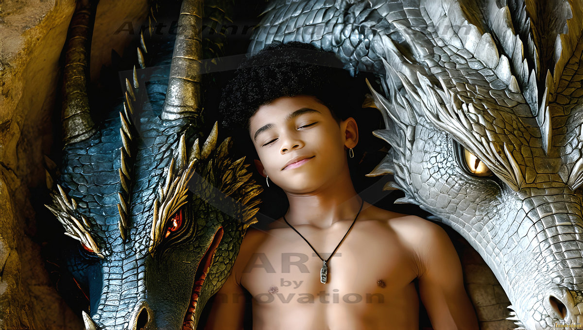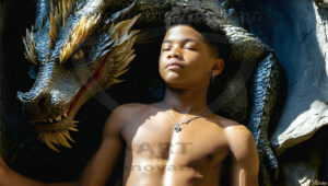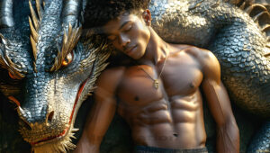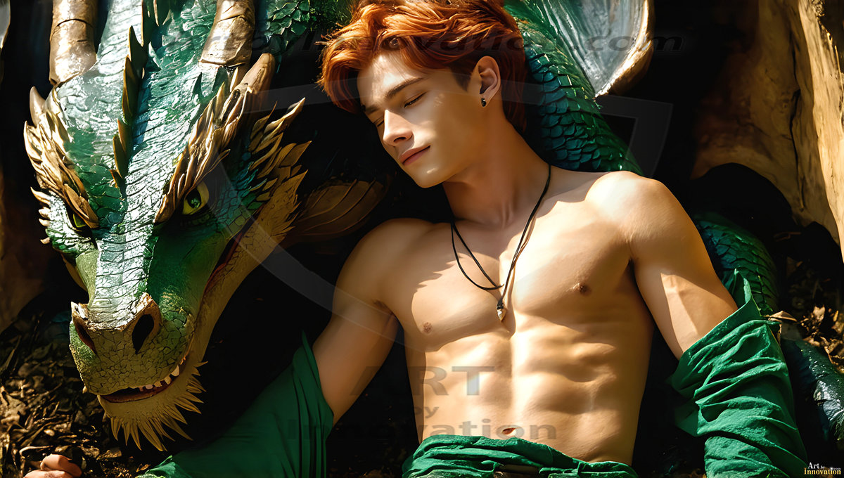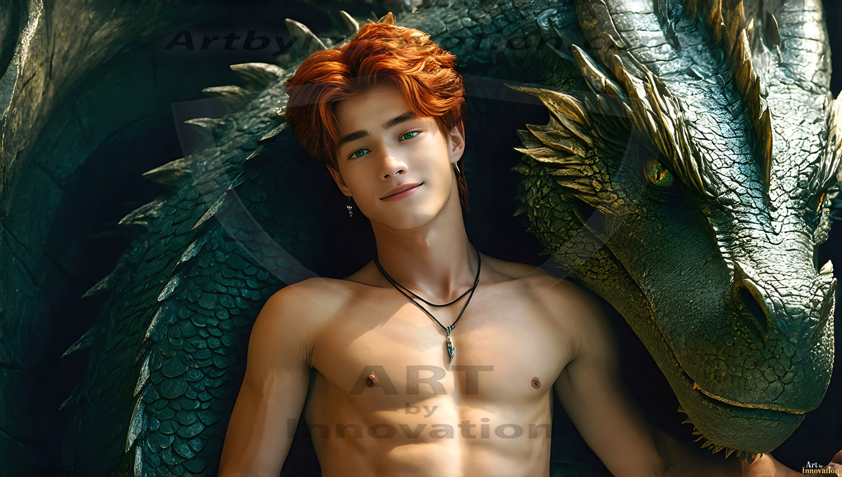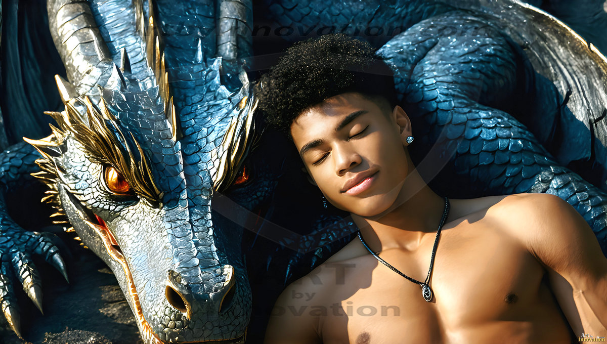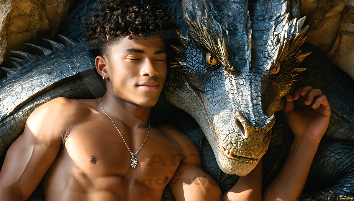 Standing before you is a prince and his dragon. This AI-generated collection features handsome, shirtless young princes with muscular physiques alongside their magnificent dragons — from the obsidian-scaled Bahamut with silver wings, to golden dragons sleeping in ancient caves. Each image blends the beauty of the male form with the raw majesty of dragonkind, set against breathtaking fantasy backdrops. Created using Flux.1, ComfyUI, Stable Diffusion, and refined with Adobe Photoshop by © Jeff Dupler | Art by Innovation | https://www.artbyinnovation.com