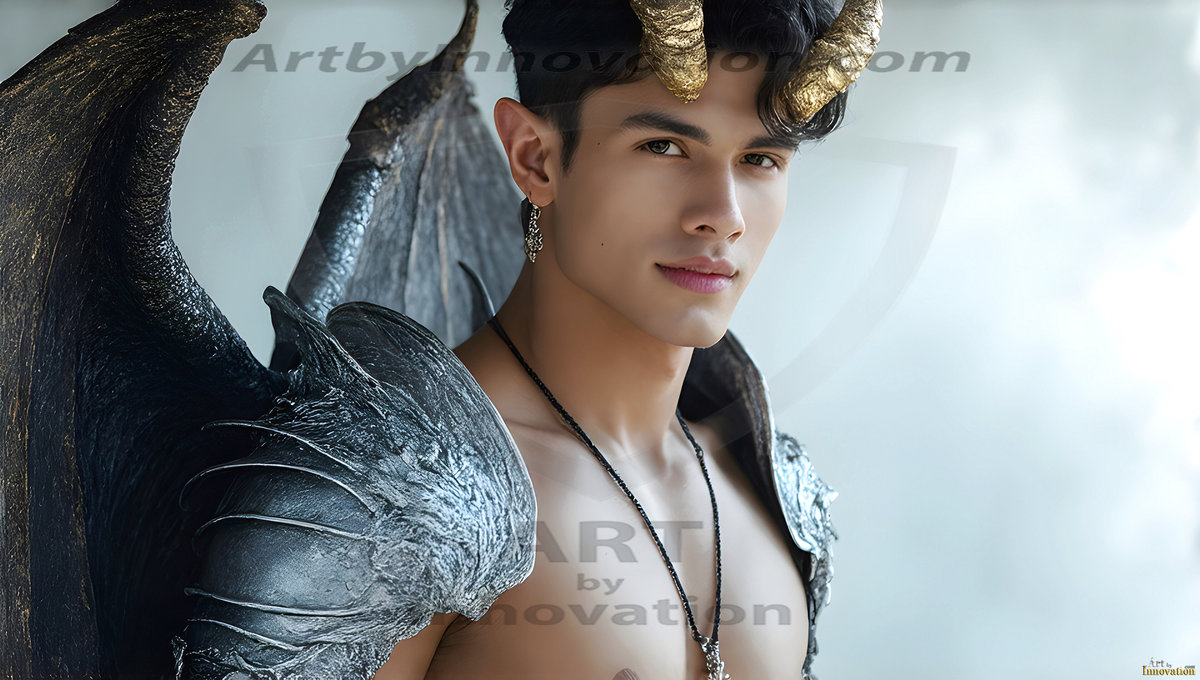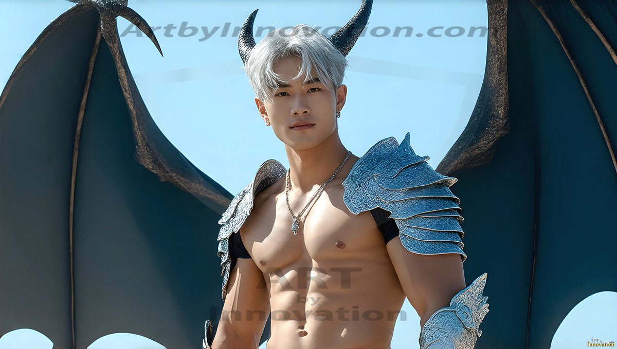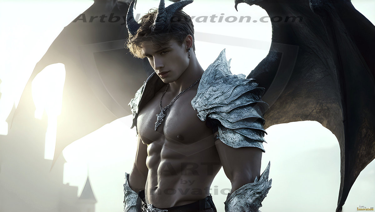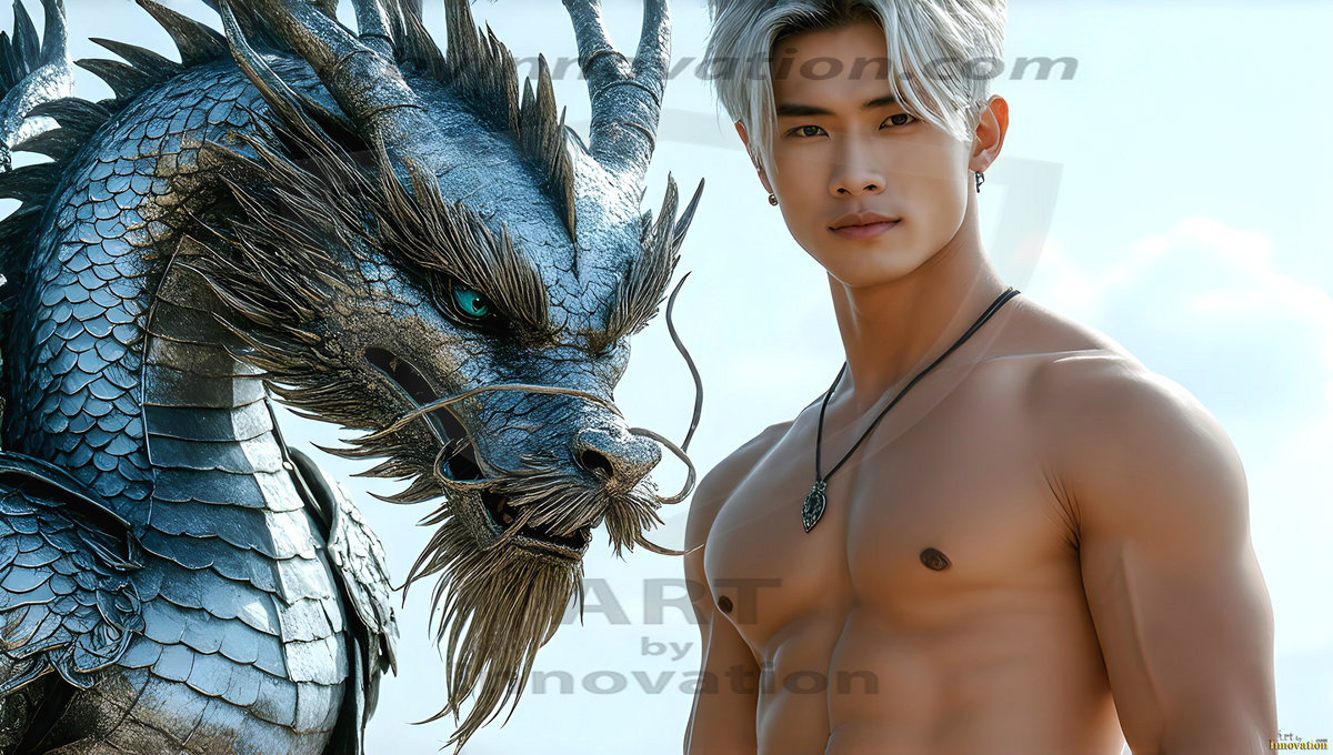 Standing before you is a prince and his dragon. This AI-generated collection features handsome, shirtless young princes with muscular physiques alongside their magnificent dragons — from the obsidian-scaled Bahamut with silver wings, to golden dragons sleeping in ancient caves. Each image blends the beauty of the male form with the raw majesty of dragonkind, set against breathtaking fantasy backdrops. Created using Flux.1, ComfyUI, Stable Diffusion, and refined with Adobe Photoshop by © Jeff Dupler | Art by Innovation | https://www.artbyinnovation.com