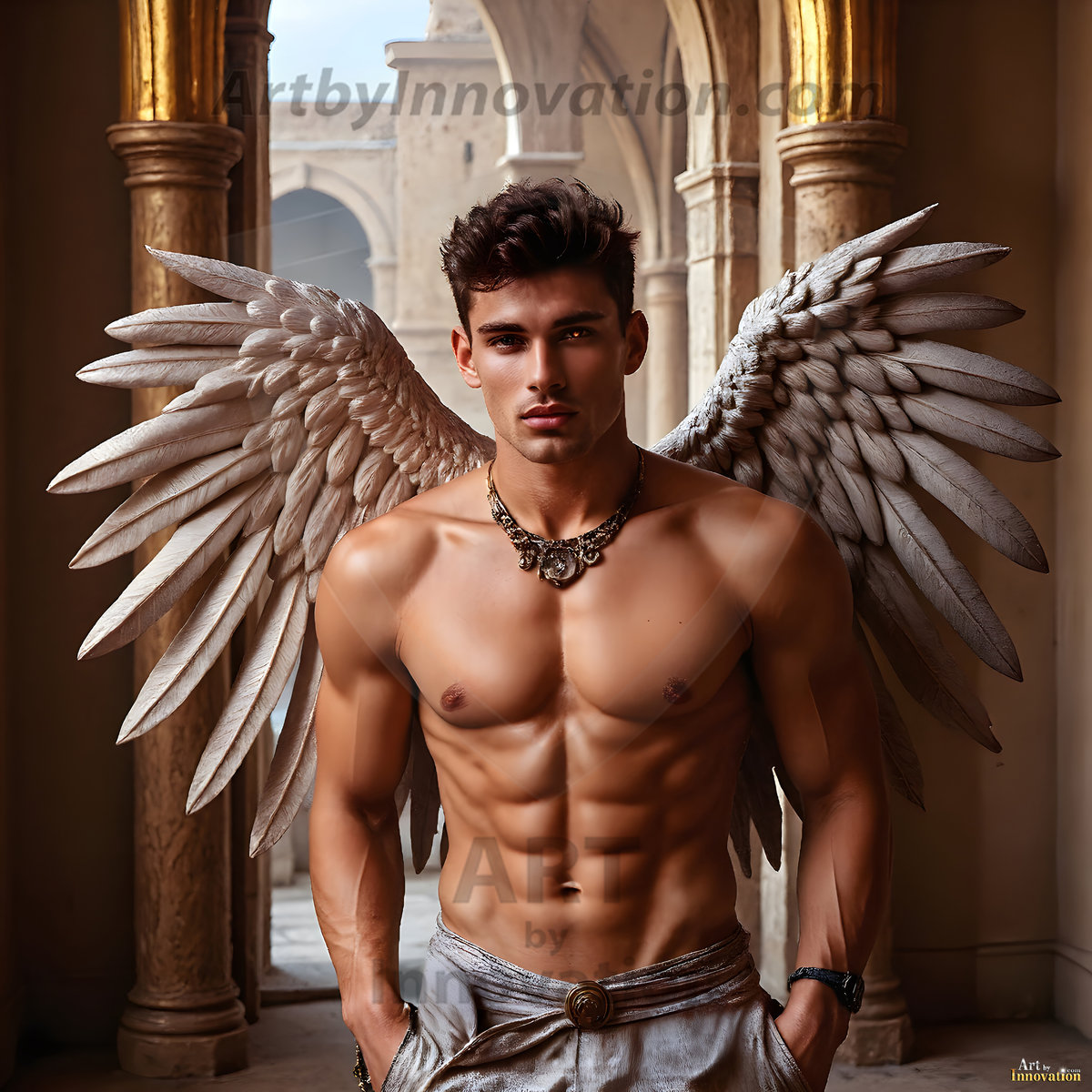 Standing before you is a prince and his dragon. This AI-generated collection features handsome, shirtless young princes with muscular physiques alongside their magnificent dragons — from the obsidian-scaled Bahamut with silver wings, to golden dragons sleeping in ancient caves. Each image blends the beauty of the male form with the raw majesty of dragonkind, set…