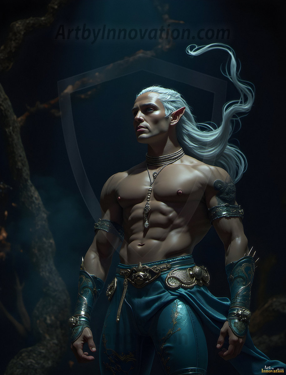 Step into an enchanted realm where magic and beauty meet. This collection of AI-generated male elf art features handsome, powerful elven warriors and mystics set against breathtaking fantasy landscapes — moonlit forests, ancient ruins, and shimmering magical realms. Each image was crafted using Flux.1 and ComfyUI, bringing the elegance and mystique of elven culture to vivid, ultra-high-definition life. Created by © Jeff Dupler | Art by Innovation | https://www.artbyinnovation.com