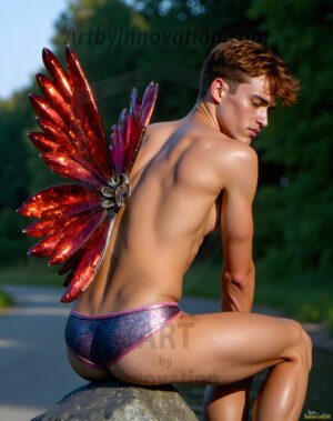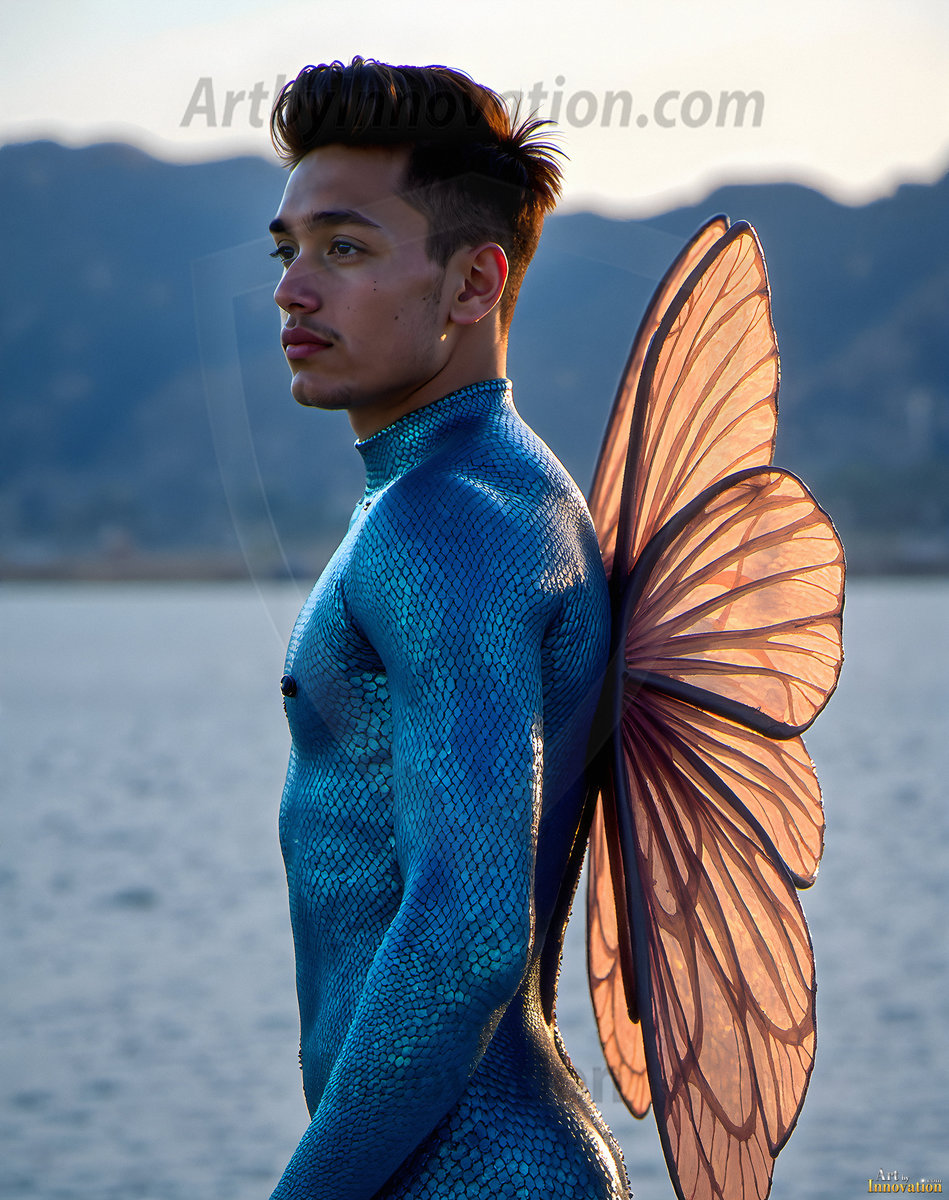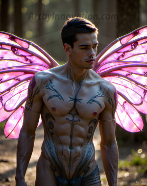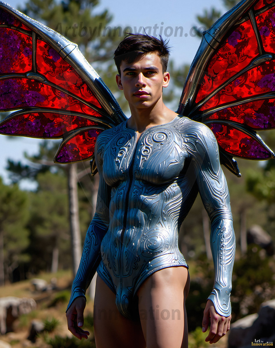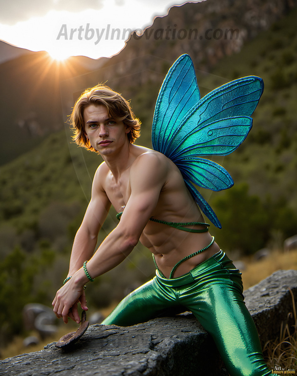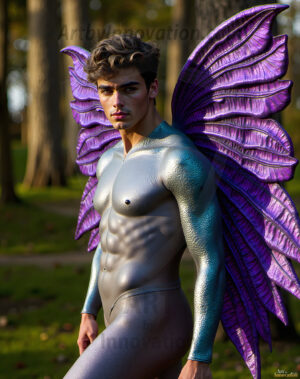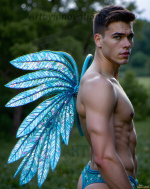 Capturing the pristine and elusive male fairy — brought to life through the power of AI. Imagine a realm where handsome young men possess enormous shimmering crystal wings, vibrant and radiant, capturing and reflecting the light of the environment in a mesmerizing way. Set in mysterious enchanted forests, each fairy exudes an otherworldly beauty and elegance that blurs the line between fantasy and reality. Created using Flux.1, ComfyUI, and Stable Diffusion by © Jeff Dupler | Art by Innovation | https://www.artbyinnovation.com