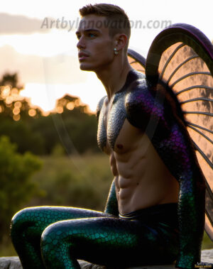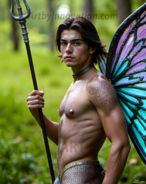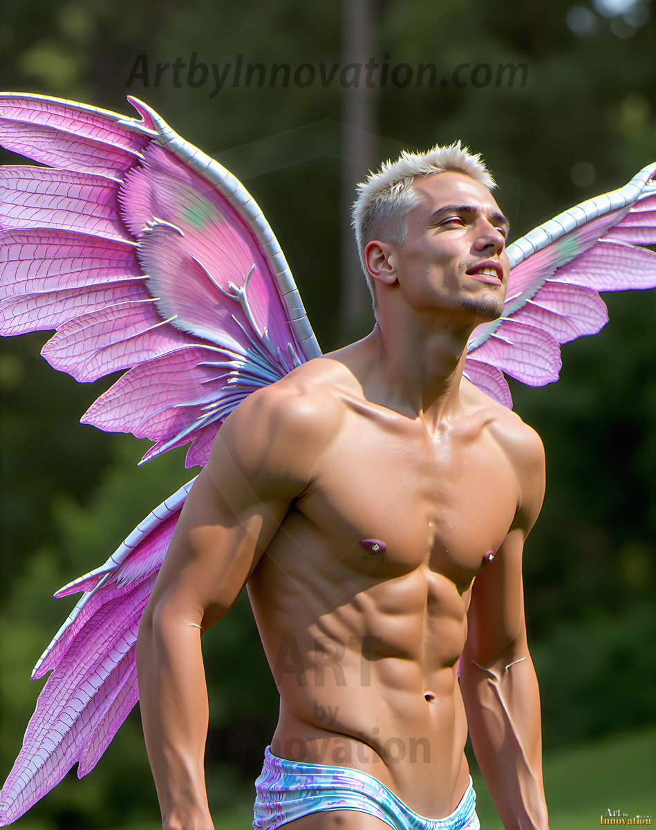 Capturing the pristine and elusive male fairy — brought to life through the power of AI. Imagine a realm where handsome young men possess enormous shimmering crystal wings, vibrant and radiant, capturing and reflecting the light of the environment in a mesmerizing way. Set in mysterious enchanted forests, each fairy exudes an otherworldly beauty and elegance that blurs the line between fantasy and reality. Created using Flux.1, ComfyUI, and Stable Diffusion by © Jeff Dupler | Art by Innovation | https://www.artbyinnovation.com