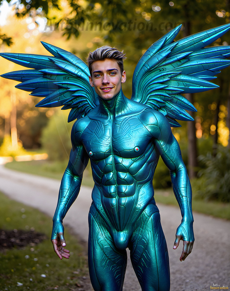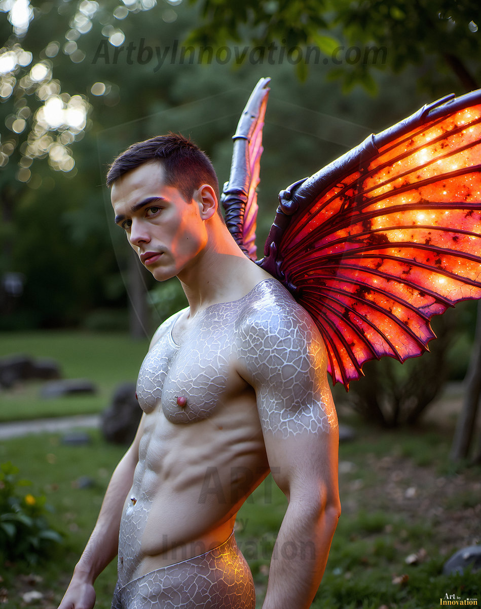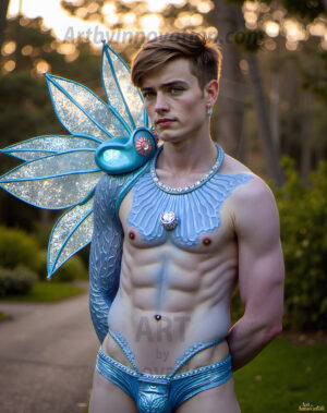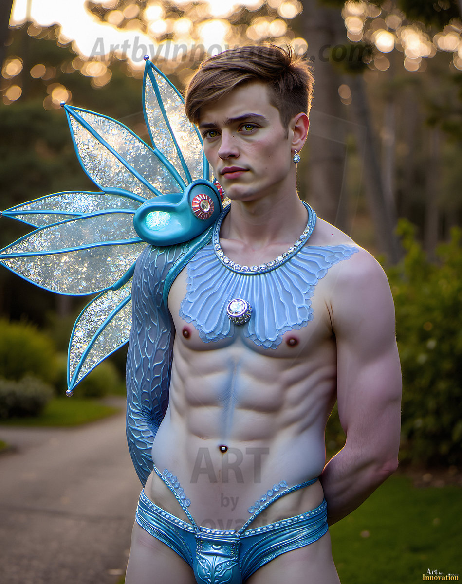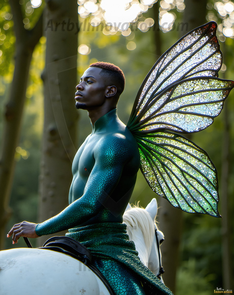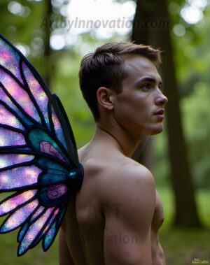 Capturing the pristine and elusive male fairy — brought to life through the power of AI. Imagine a realm where handsome young men possess enormous shimmering crystal wings, vibrant and radiant, capturing and reflecting the light of the environment in a mesmerizing way. Set in mysterious enchanted forests, each fairy exudes an otherworldly beauty and elegance that blurs the line between fantasy and reality. Created using Flux.1, ComfyUI, and Stable Diffusion by © Jeff Dupler | Art by Innovation | https://www.artbyinnovation.com