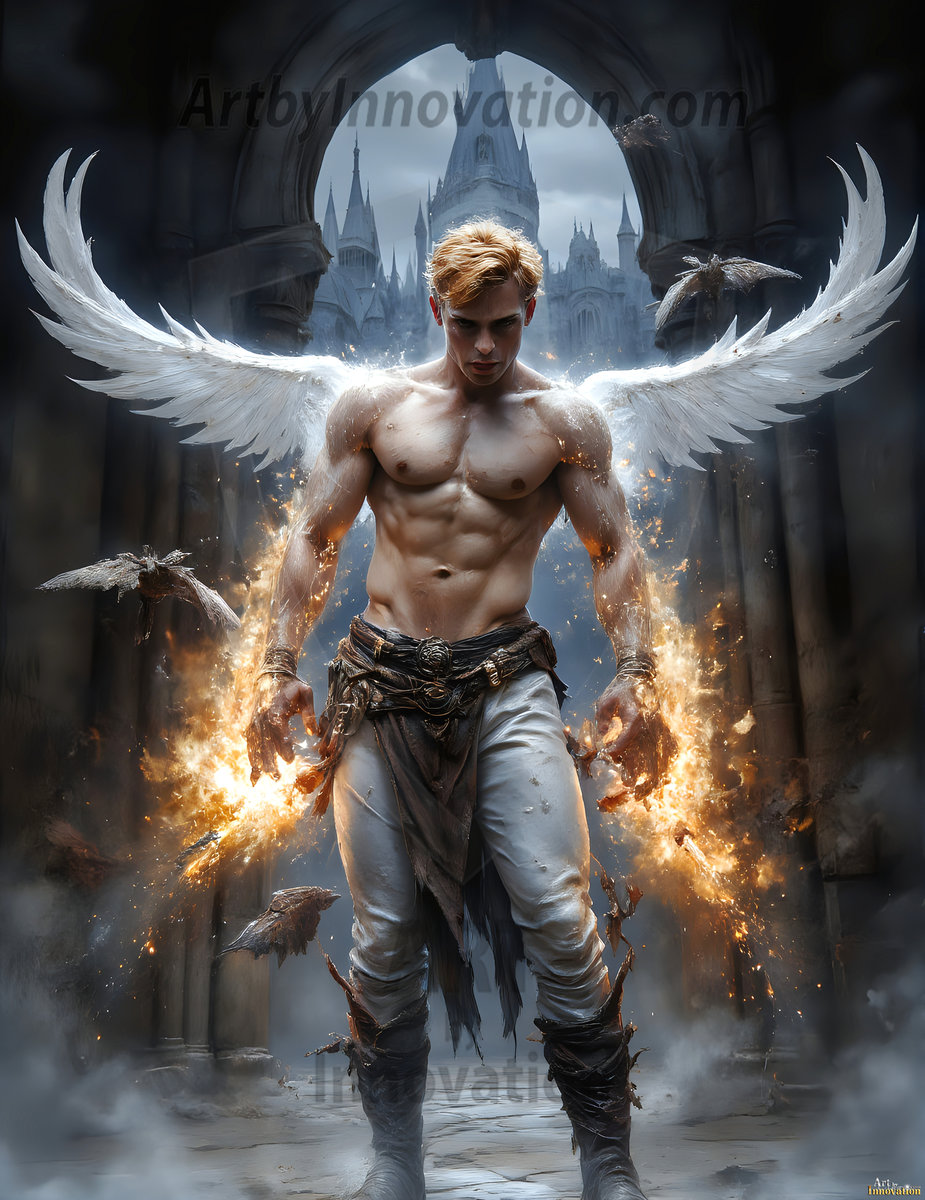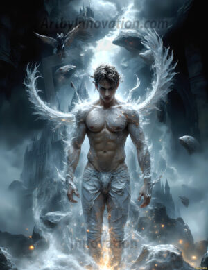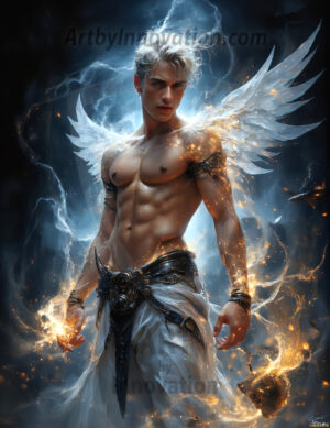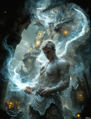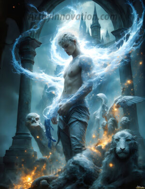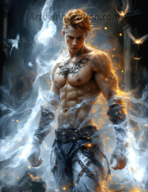 AI-generated male elemental mages wielding fire, ice, lightning, and earth magic in epic fantasy battle scenes.