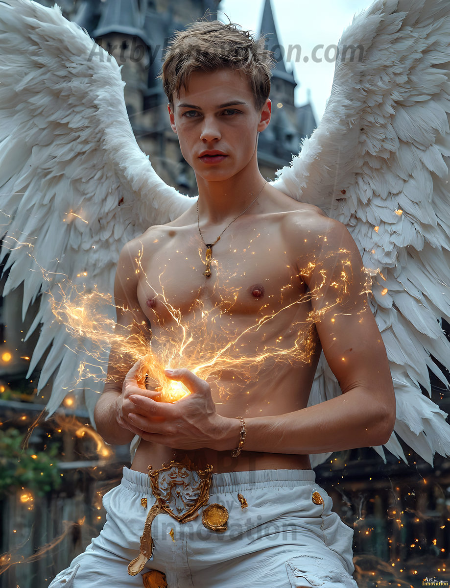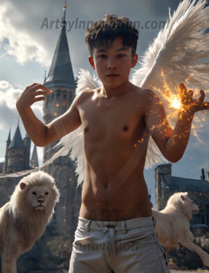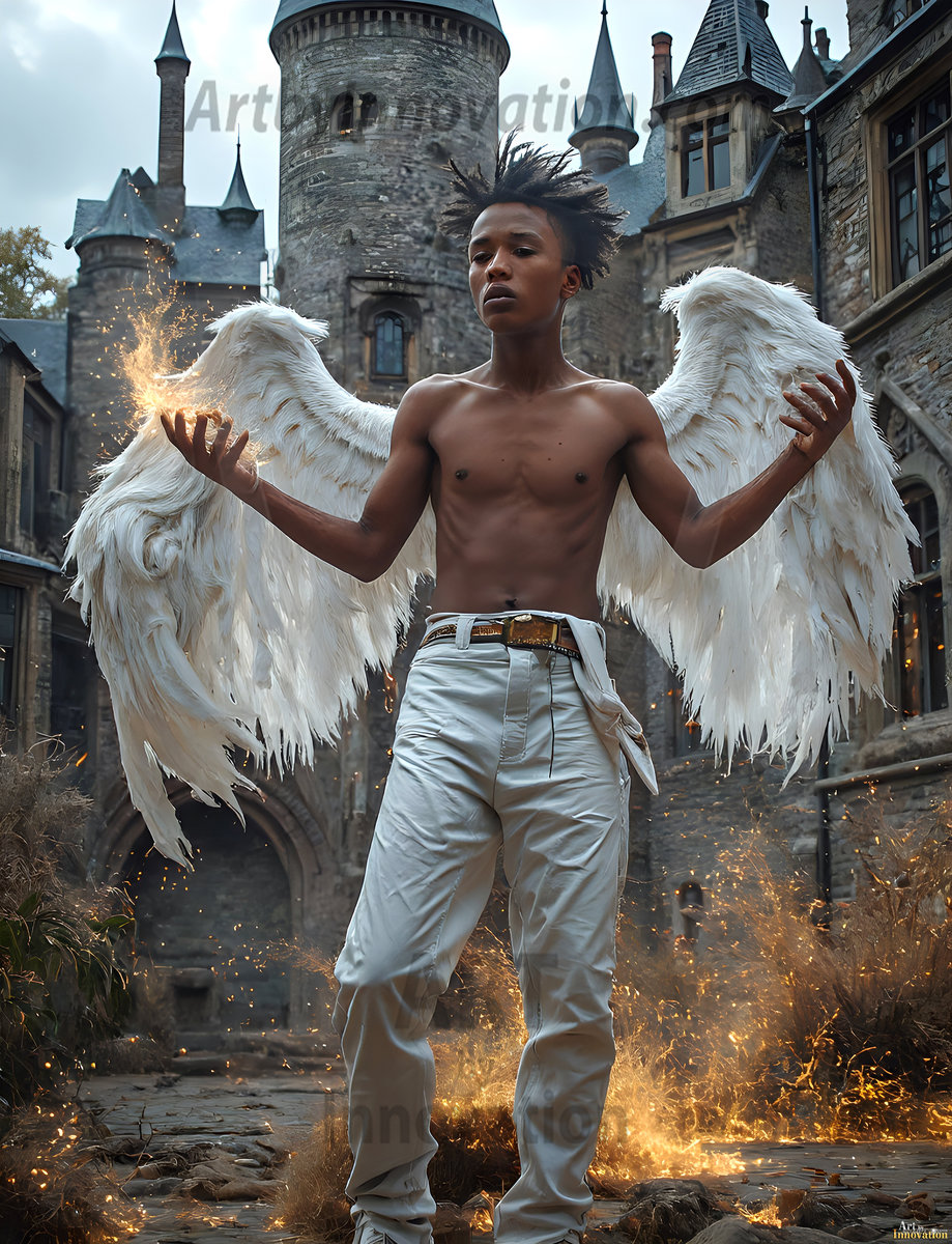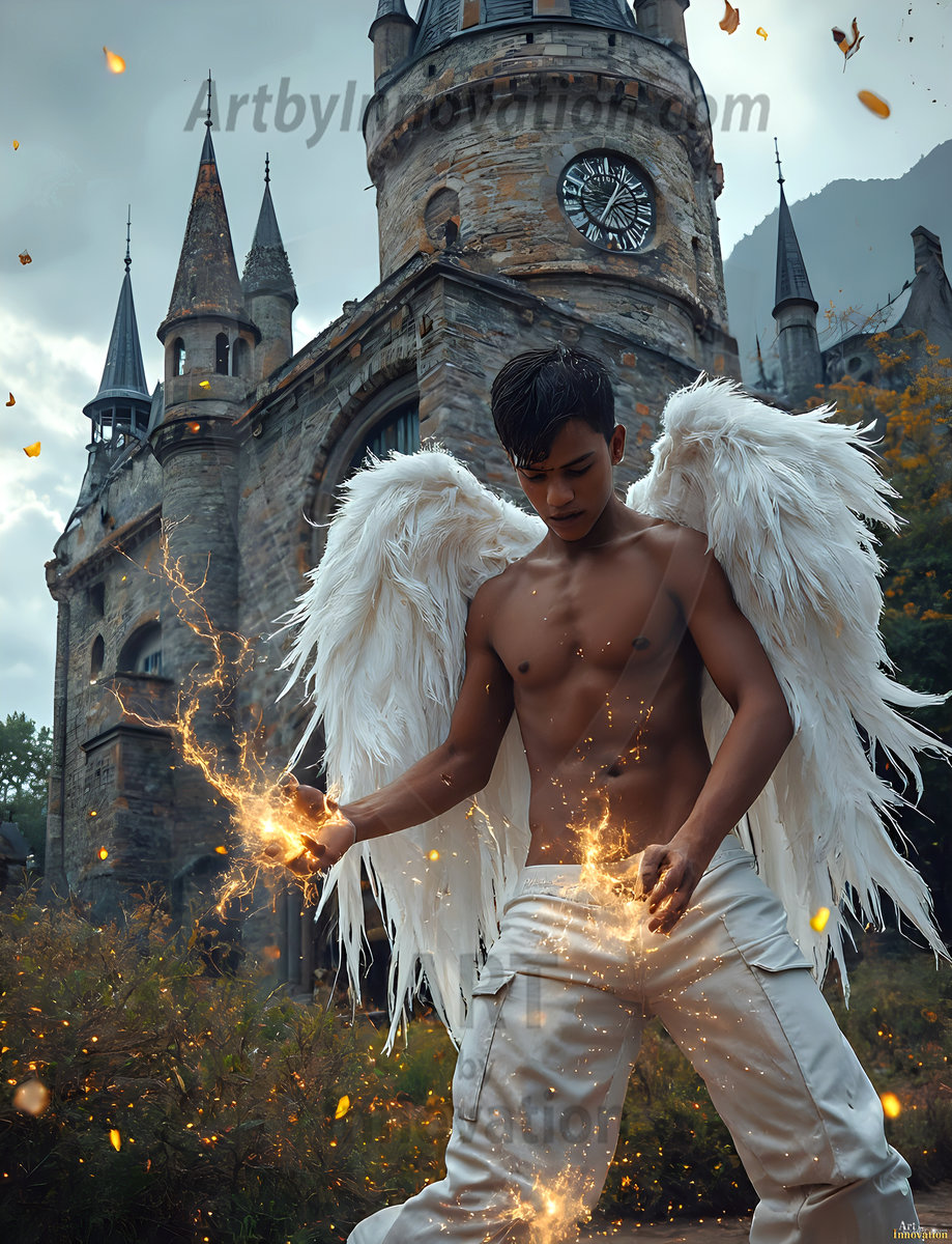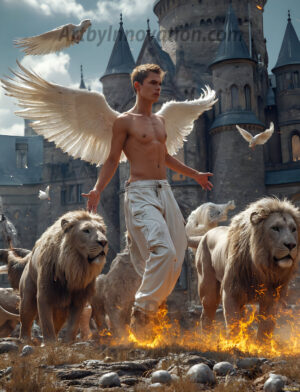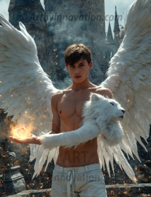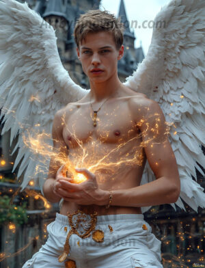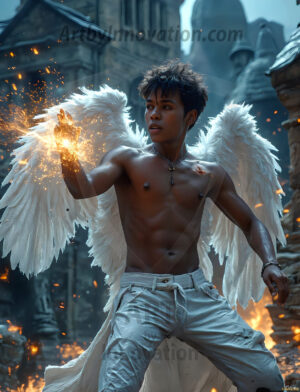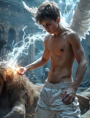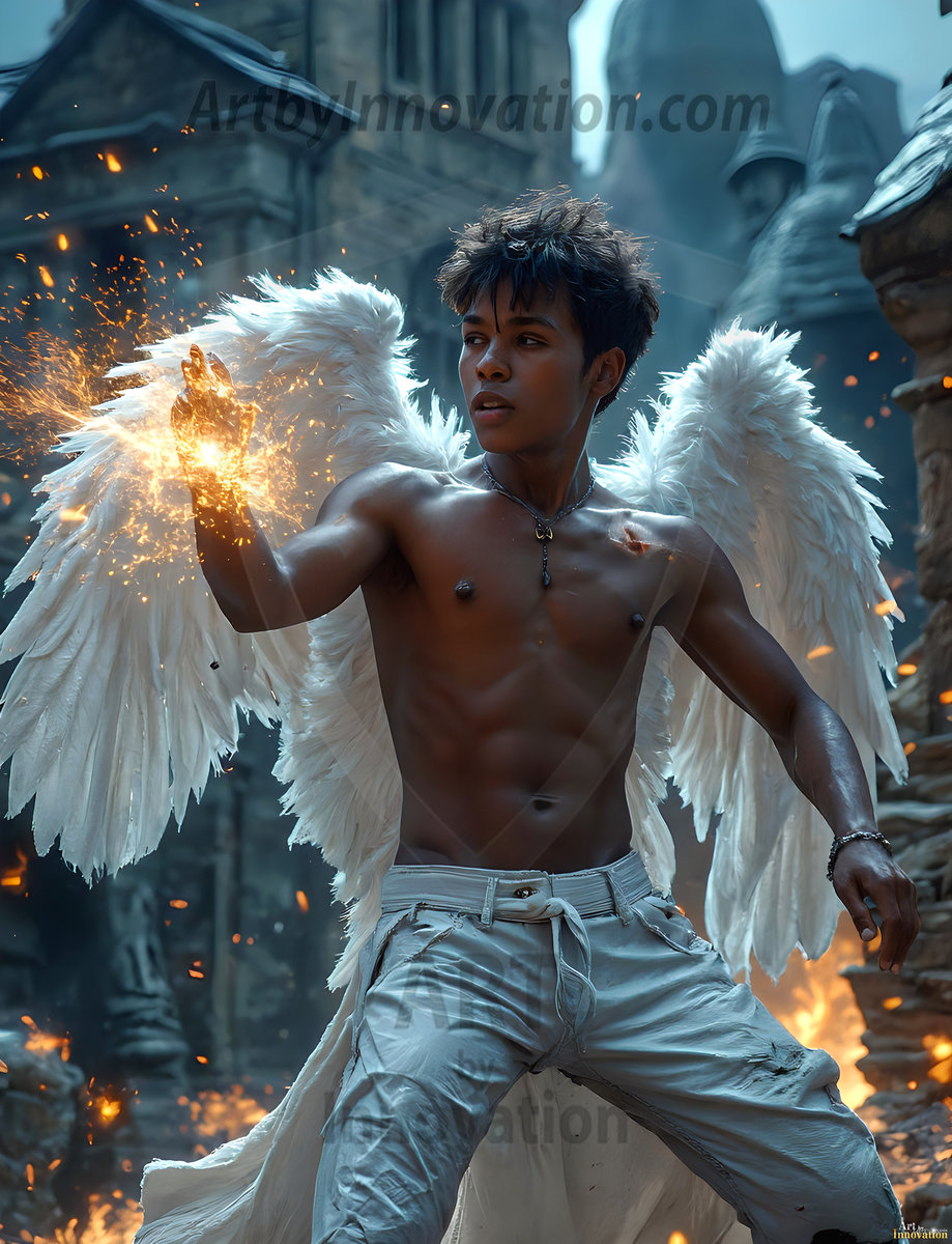 AI-generated hot male demons with dark wings and glowing eyes — handsome, dangerous, and seductive from the ruins of hell.