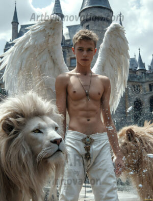AI-generated LGBTQ Pride art — beautiful handsome men embellished with the vibrant rainbow colors of the gay pride flag. 500+ images.