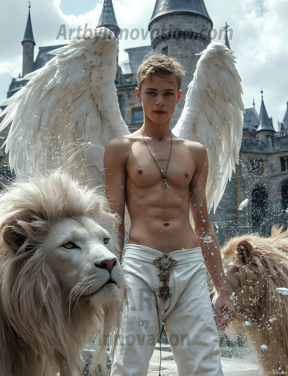 Handsome AI-generated young princes alongside magnificent dragons — obsidian scales, silver wings, and stunning fantasy backdrops.