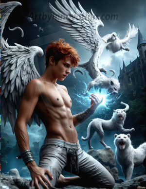 AI-generated dark fantasy art of handsome young male zombies in cinematic apocalyptic settings — beautiful and terrifying.