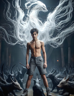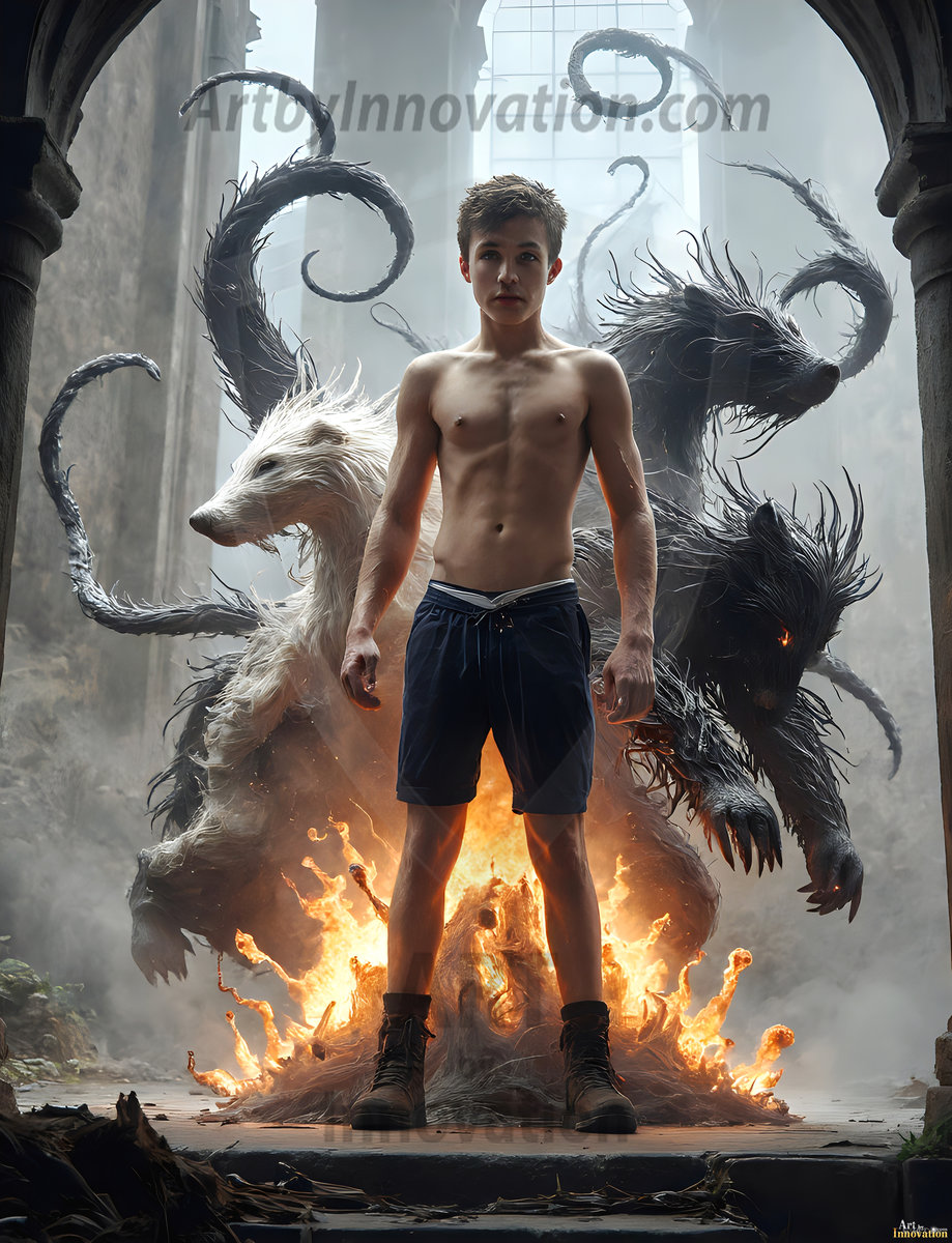 AI-generated hot male demons with dark wings and glowing eyes — handsome, dangerous, and seductive from the ruins of hell.