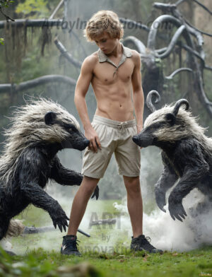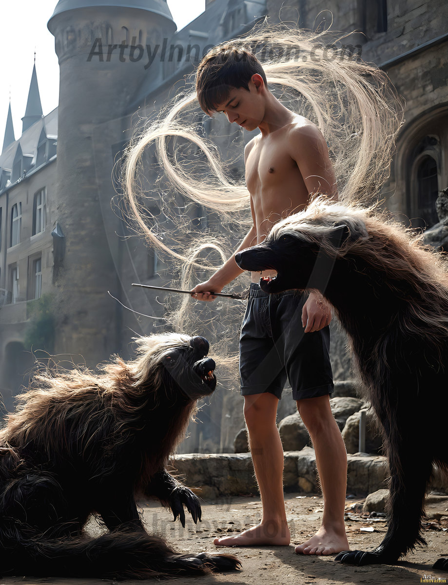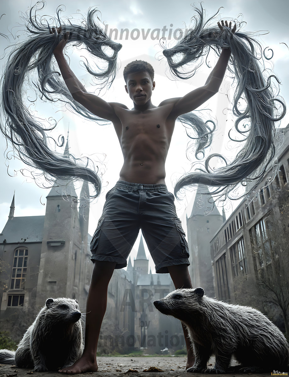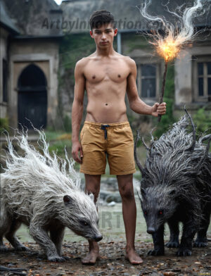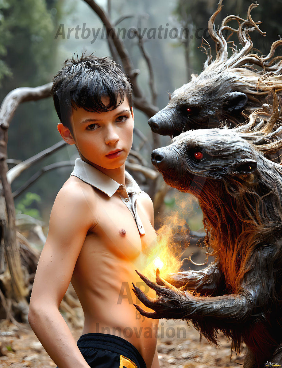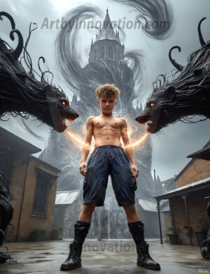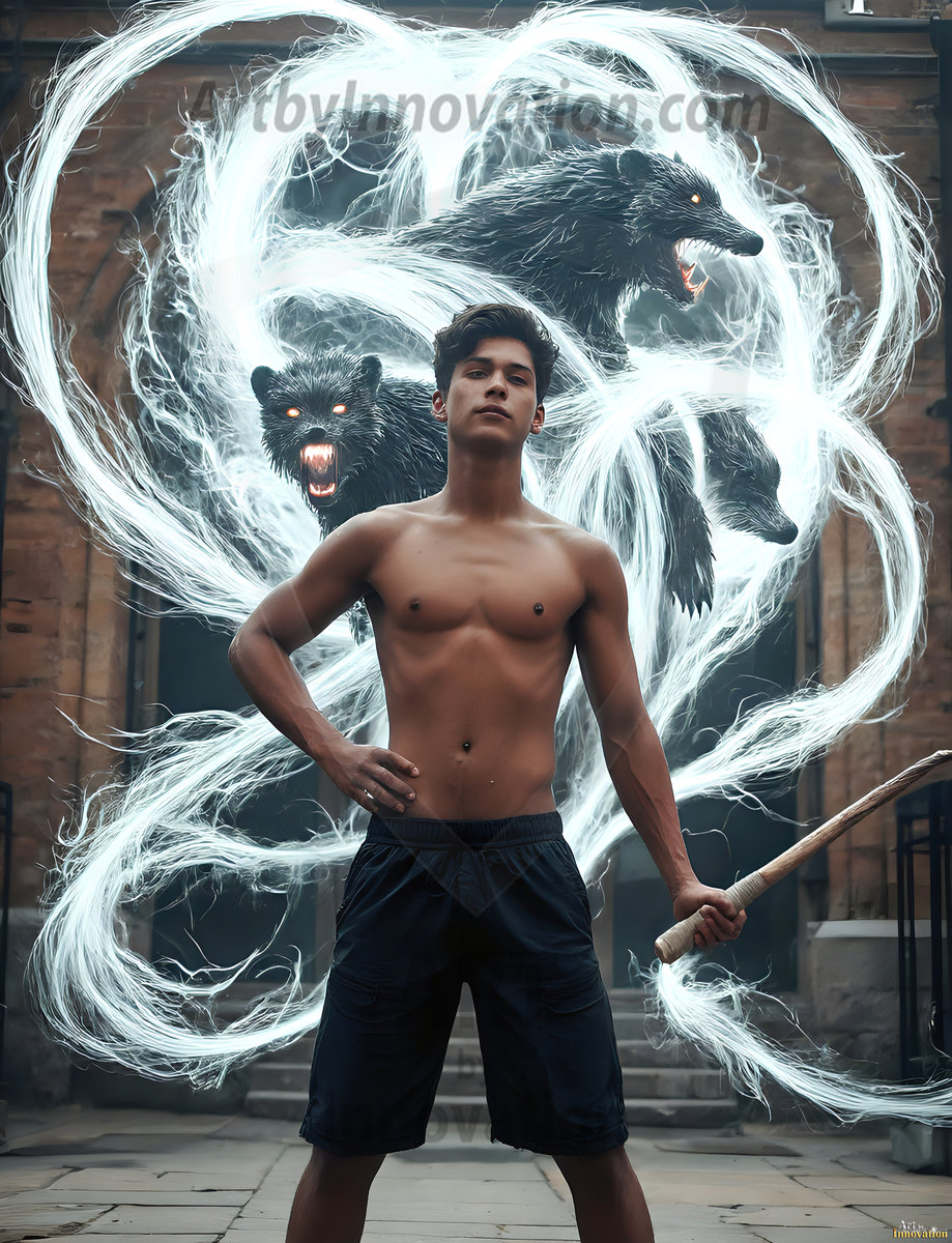 AI-generated male elemental mages wielding fire, ice, lightning, and earth magic in epic fantasy battle scenes.