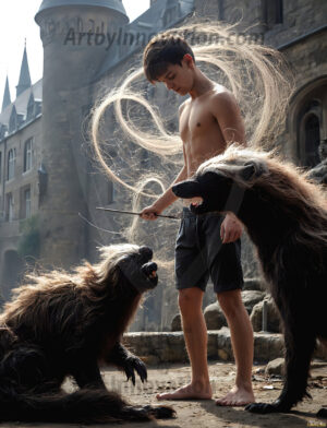 Handsome AI-generated Slytherin wizards conjuring demonic snakes at Hogwarts — dark, ambitious, and dangerously beautiful.