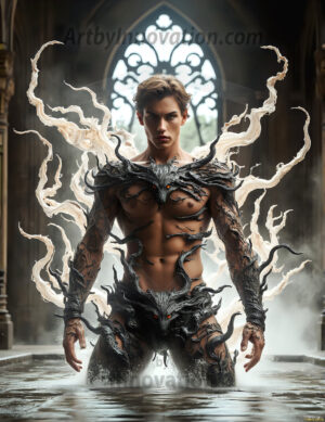 Handsome AI-generated male fairies with enormous shimmering crystal wings in enchanted fantasy forests.