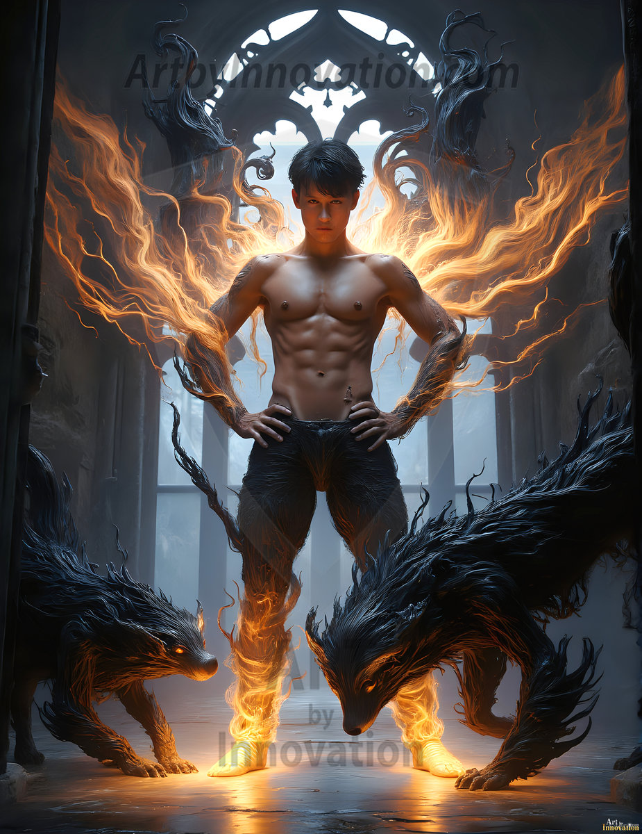 Handsome AI-generated male golden angels with enormous golden wings and radiant divine halo lighting — God’s most beautiful warriors.