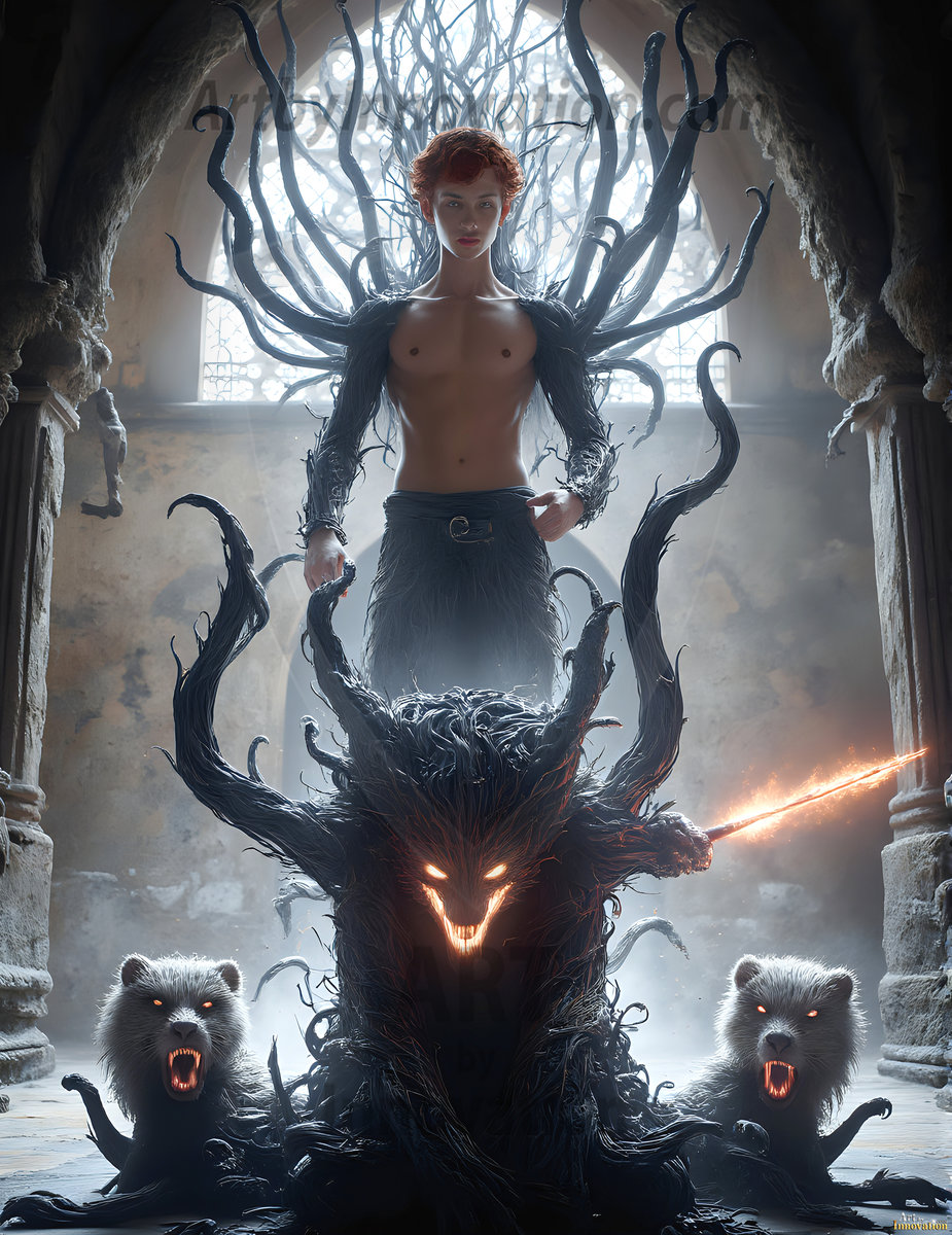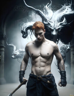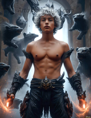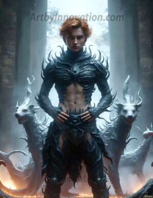 AI-generated hot male demons with dark wings and glowing eyes — handsome, dangerous, and seductive from the ruins of hell.