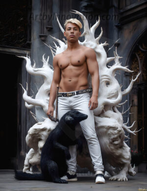 Handsome AI-generated male elves in stunning fantasy worlds — enchanted forests, moonlit realms, and shimmering elven armor.