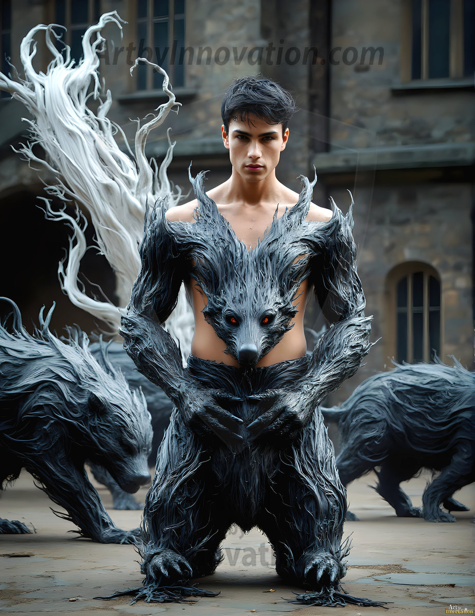 AI-generated abstract art — handsome men emerging from classic oil painting canvases, art imitating life in stunning surreal imagery.